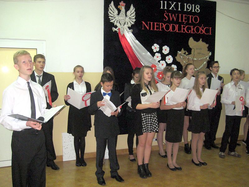 Występujący swoim strojem i wspaniałą postawą pokazali, jak uczniowie szkól noszących imiona wielkich Polaków – mjr. Henryka Dobrzańskiego „Hubala” i Jana Pawła II, mogą pokazać, że są patriotami. Apel zakończyła swoim wystąpieniem p. dyr. Danuta Krawczuk. Przypominała, jak należy zachować się podczas śpiewania hymnu narodowego i w czasie różnych uroczystości patriotycznych. Podziękowała młodzieży za wzorowe zachowanie. I a, wspierana przez chórek uczniowski ze szkoły podstawowej, stanęła na wysokości zadania.