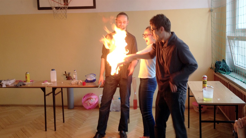 Na własnych strunach głosowych sprawdzili jak hel zmienia głos. Mogli sprawdzić właściwości cieczy nienewtonowskich oraz wytworzyć wir wody w butelce. Żywa lekcja fizyki bardzo podobała się wszystkim widzom. Podczas eksperymentów publiczność wspaniale się bawiła. Prowadzący rozbudzili wśród uczniów zainteresowanie wiedzą z zakresu fizyki i chemii. Doświadczenia dostarczyły wszystkim obecnym niezapomnianych przeżyć i emocji.