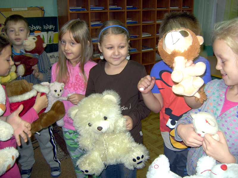 Dnia 25 listopada sala kl. I „b” zamieniła się w Misiolandię. Dzieci przyniosły na tę okazję swoje ulubione misie. Wśród pluszaków były małe i duże maskotki. Podczas zajęć dzieci opowiadały o swoich misiach, wysłuchały pięknej, aczkolwiek smutnej „misiowej” bajeczki. Poznały też historię pluszowej zabawki i przypomniały sobie postacie ważnych i znanych misiów, bohaterów książek i filmów. Rozpoznawały portrety Kubusia Puchatka, Misia Uszatka, Gumisiów, misia Paddingtona, Yogi, Colargola. Dużo radości sprawiło wszystkim rysowanie misia z zamkniętymi oczami i „Portretu misia” . Poszczególne konkurencje przeplatane były zabawami ruchowymi i piosenkami o misiach.