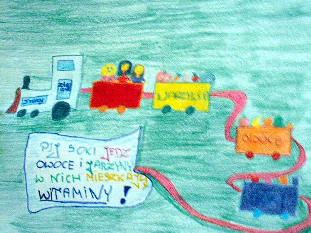 Realizując program Unii Europejskiej „Owoce w szkole” w klasie I a odbyły się zajęcia w czasie, których każdy wykazał się inwencją twórczą oraz bogactwem wiedzy na temat owoców, ich spożywania oraz roli jaką pełnią w naszym odżywianiu. Wielką atrakcją dla dzieci było przygotowanie „owocowego przysmaku”, a że zrobiony własnoręcznie - rozbudził u nich niesamowity apetyt. Radości było wiele w przygotowaniu, a potem w jedzeniu. W ramach programu, który realizuje szkoła OWOCE W SZKOLE dzieci z klasy I a przygotowały również plakaty i hasła promujące zdrowe odżywianie oraz wykonały samodzielnie pyszne, zdrowe i kolorowe kanapki.