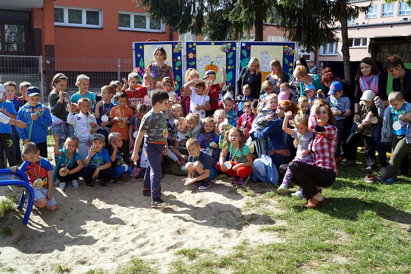 Piątkowy poranek 19 września br. był kolorowy za sprawą uczniów klasy 0a, Ic oraz ich koleżanek i kolegów z Niepublicznego Przedszkola Specjalnego „Mamy Siebie”, którzy postanowili barwnie pożegnać tę porę roku. Wyobraźnia dziecięca pozwoliła zamienić szkolny plac zabaw w Królestwo Dyń, w którym zoorganizowano wystawę wyjątkowych okazów, zabawy integracyjne w kręgu, tor przeszkód, wspólne tworzenie dyniowego węża, zabawę w stonogę, historyjkę obrazkową „O Króliczkach, które uwielbiały dynie” oraz odpoczynek na karuzeli, huśtawce, bądź w drewnianej wieży. W tym samym czasie inne osoby ozdabiały malunkami dyń „ściany królewskich komnat”.