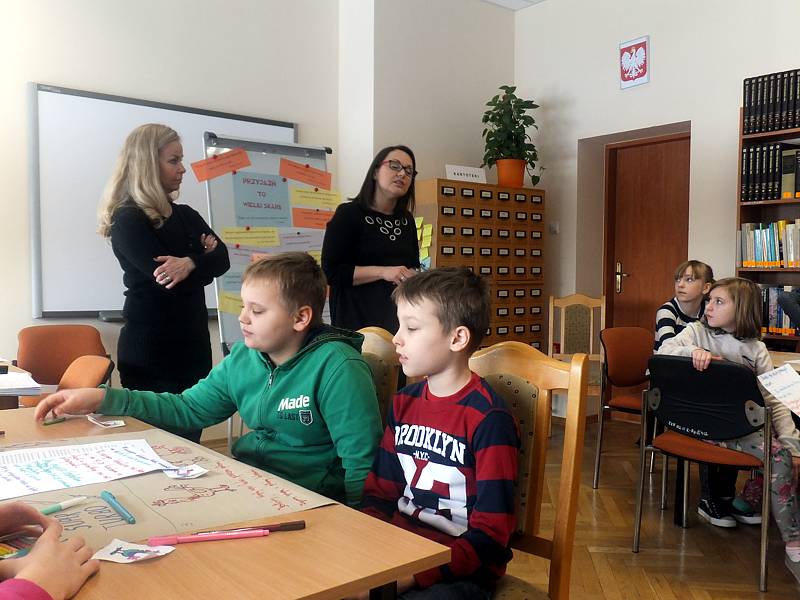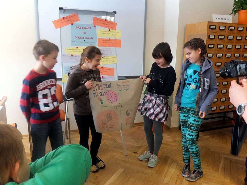 Dnia 19 stycznia kl. IV b udała się do Biblioteki Pedagogicznej, aby wziąć udział w zajęciach pod hasłem: "Szukam przyjaciela. Potrafię nim być". Były one prowadzone przez nauczycieli bibliotekarzy – p. Aleksandrę Kopczyńską i Agnieszkę Zyśk. Na początku dzieci musiały się przedstawić, a jednocześnie powiedzieć kilka zdań o sobie. Później przyszedł czas na wykonanie konkretnych zadań.
