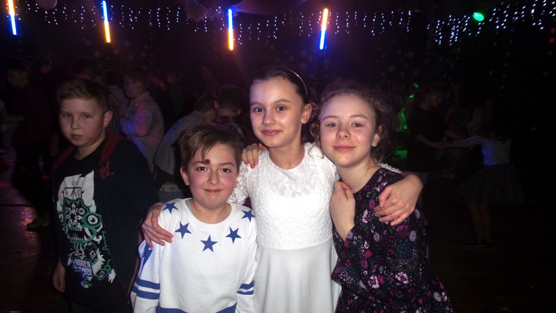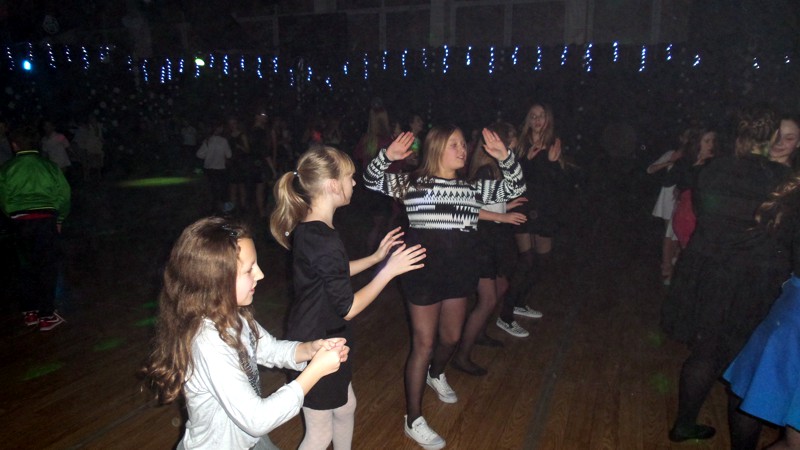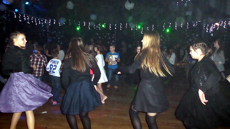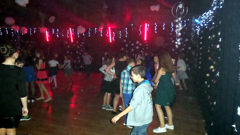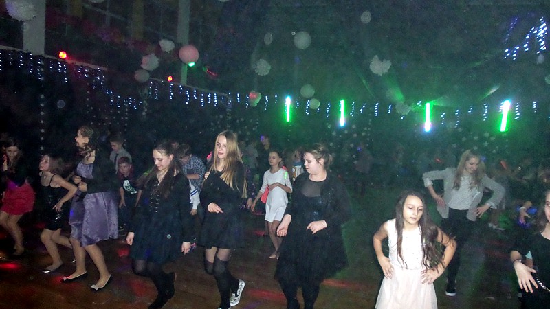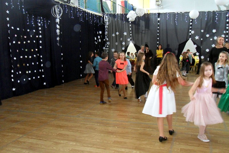 Najmłodszych bawiła Śnieżynka – pani Jolanta Głowacz, która wspaniałymi pomysłami, różnorodnymi konkursami zachęcała dzieci do wspólnej zabawy. Oprawę muzyczną zapewnił pan Jerzy Wiśniewski, który bawił uczniów świetnie dobraną muzyką. Rodzice przygotowali swoim dzieciom smaczny poczęstunek.