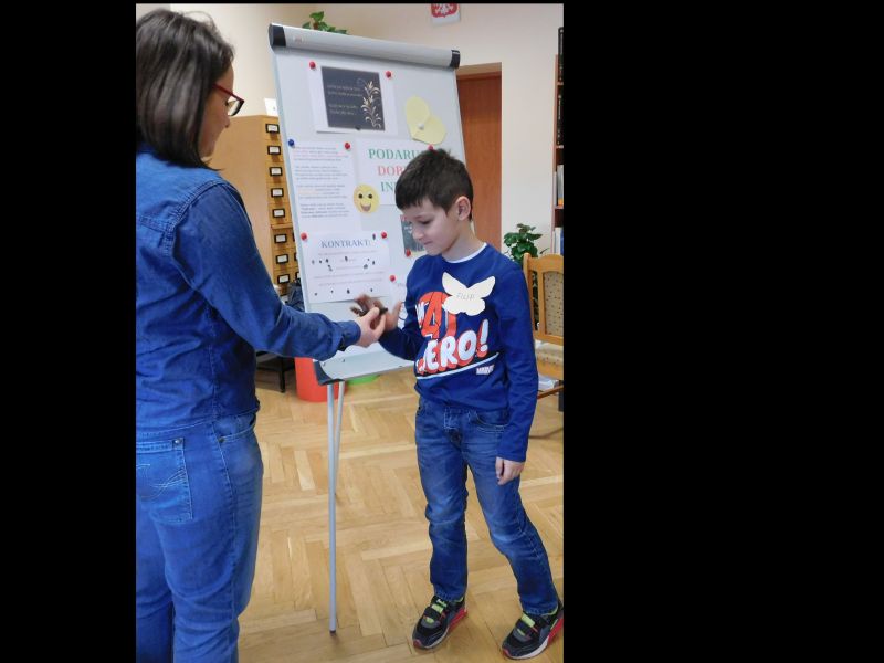"Dobro. Im więcej go dajesz, tym więcej dostajesz”. Przekonali się o tym uczniowie z klasy I b, biorąc aktywny udział w zajęciach edukacyjno-zabawowych ,,Podaruj dobro innym”, które odbyły się w Bibliotece Pedagogicznej, w dniu 4 lutego. Zajęcia przeprowadziły p. Aleksandra Kopczyńska i p. Elżbieta Rafalska. Na początku dzieci usiadły w kręgu, przedstawiły się i powiedziały kilka zdań o sobie – jaki jest ulubiony kolor, co najbardziej lubią jeść.