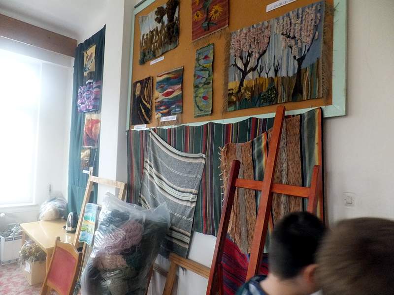 Ciekawym miejscem na mapie naszej wędrówki okazała się także pracownia rękodzieła artystycznego, w której to dzieci ujrzały sprzęt tkacki, surowce, kilimy, gobeliny, pasiaki. Ostatnim punktem programu był pobyt w sali, w której odbywają się prezentacje, ale i próby.