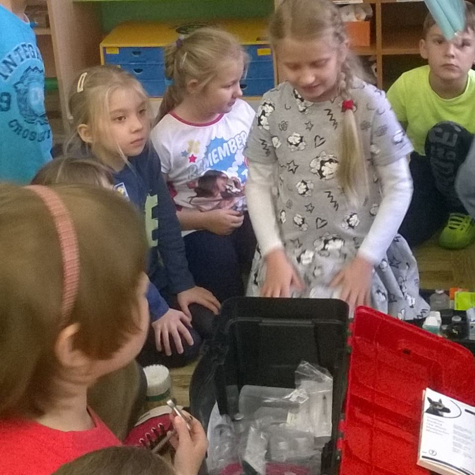 Klasę I a odwiedził lekarz weterynarii pan Arkadiusz Marciniuk. Podczas spotkania Pan doktor opowiedział dzieciom na czym polega jego praca oraz uświadomił, że zwierzęta, tak jak ludzie też chorują. Omówione zostały zasady prawidłowego żywienia pupili oraz w jaki sposób należy dbać o ich higienę. Pan weterynarz przyniósł ze sobą podstawowy sprzęt lekarski, dzięki czemu dzieci przez moment mogły wcielić się w rolę lekarza i poczuć się jak prawdziwy weterynarz.