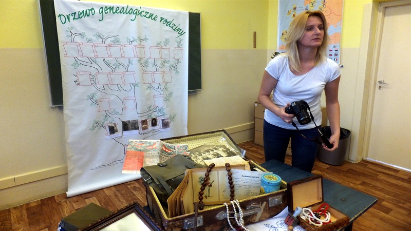 Po wysłuchaniu wspomnień uczniowie zapisali pytania, które by chcieli zadać starszym osobom. Następnie Panie opowiedziały o przyniesionych przez siebie rodzinnych pamiątkach, o tworzeniu drzewa genealogicznego. Niezwykle inspirującą częścią spotkania było zapoznawanie się z treścią starych dokumentów. Na zakończenie Panie przygotowały niespodziankę, a mianowicie grę w hacele. Mimo że znana była ona przez poprzednie, a nie obecne pokolenie, bardzo się spodobała. Spotkanie, które przebiegło w niezwykle przyjaznej atmosferze, rozbudziło zainteresowania uczniów i zmusiło do refleksji nad przemijającym czasem.
