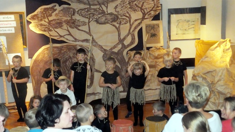 Dnia 8 listopada klasa Vb wraz z wychowawcą udała się do Muzeum im. St. Staszica na spotkanie "Boś Ty słowa mistrz - Henryk Sienkiewicz z przymrużeniem oka’’. Zostało ono zorganizowane przez pracowników Biblioteki Pedagogicznej i muzeum. Pierwszym punktem programu była prezentacja w formie słowno – muzycznej dzieci z Przedszkola nr 5. Przedszkolaki pod okiem swoich nauczycieli wcieliły się w postacie ze sławnej powieści Sienkiewicza pt. "W pustyni i w puszczy’’. Zobaczyliśmy Stasia i Nel, afrykańskie plemię. Zdumieni poziomem umiejętności wraz z innymi podziwialiśmy rytualny taniec, grę aktorską , ale także scenografię i kostiumy bohaterów.