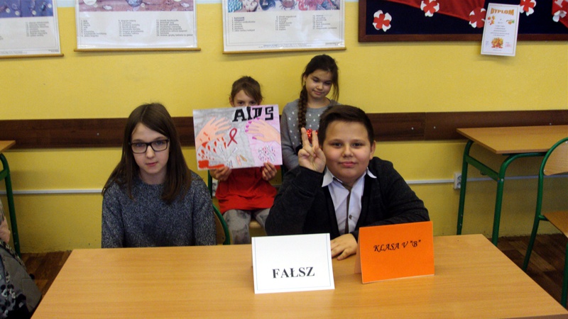 Uczniowie z klas piątych i szóstych musieli rozwiązać trudny test wiedzy o zespole nabytego upośledzenia odporności wywołanego przez wirus HIV, odpowiedzieć ustnie na pytania dotyczące choroby, na którą, niestety, jak do tej pory nie znaleziono skutecznego lekarstwa. Oprócz tego musieli zaprezentować przygotowany wcześniej plakat, który miał mieć wymiar profilaktyczny. Zmaganiom młodzieży przyglądało się jury w składzie: pielęgniarka szkolna p. Maria Kapyś, p. Justyna Marcych, i p. Ewa Sitnik – Pogwizd. Po zaciętej walce o punkty ogłoszono wyniki.