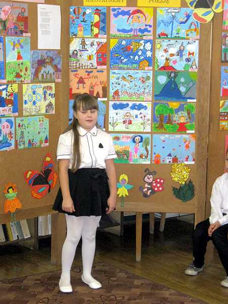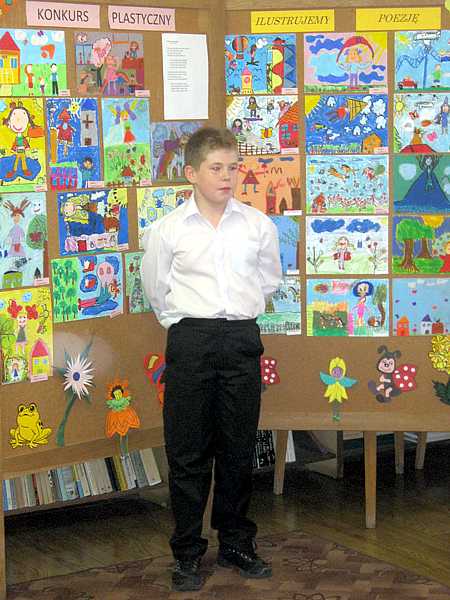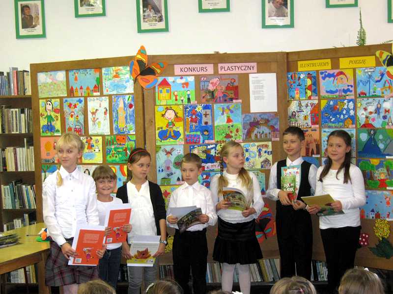 24 października biblioteka gościła drugo i trzecioklasistów. Było wśród nich 25 śmiałków deklamujących wiersze Joanny Kulmowej oraz laureaci konkursu plastycznego. Talenty recytatorskie oceniała komisja, której przewodniczyła Pani Dyrektor Danuta Krawczuk. Nagrodzono 8 uczniów: Aleksandrę Szabat, Milenę Turzyńską, Gretę Szwaczkiewicz, Patrycję Hojdę, Martynę Wiśniewską, Honoratę Dobrowolską, Kacpra Gryniewicza, Sebastiana Zająca.