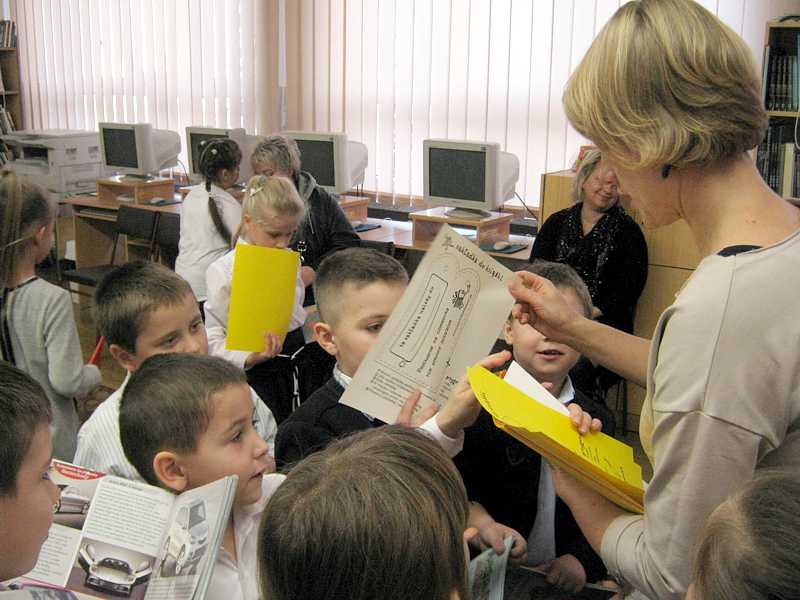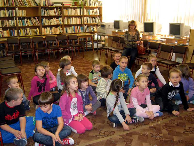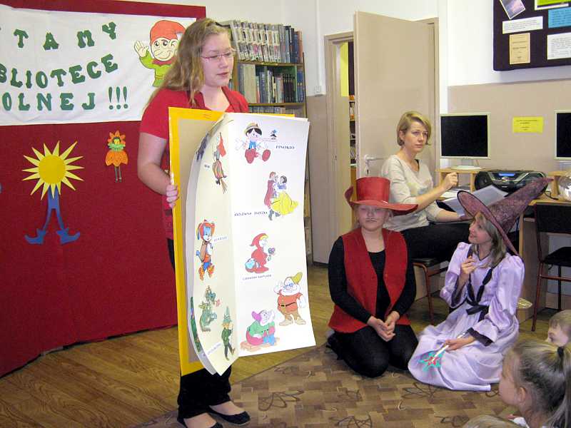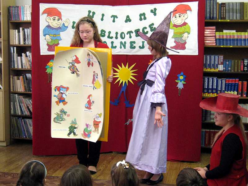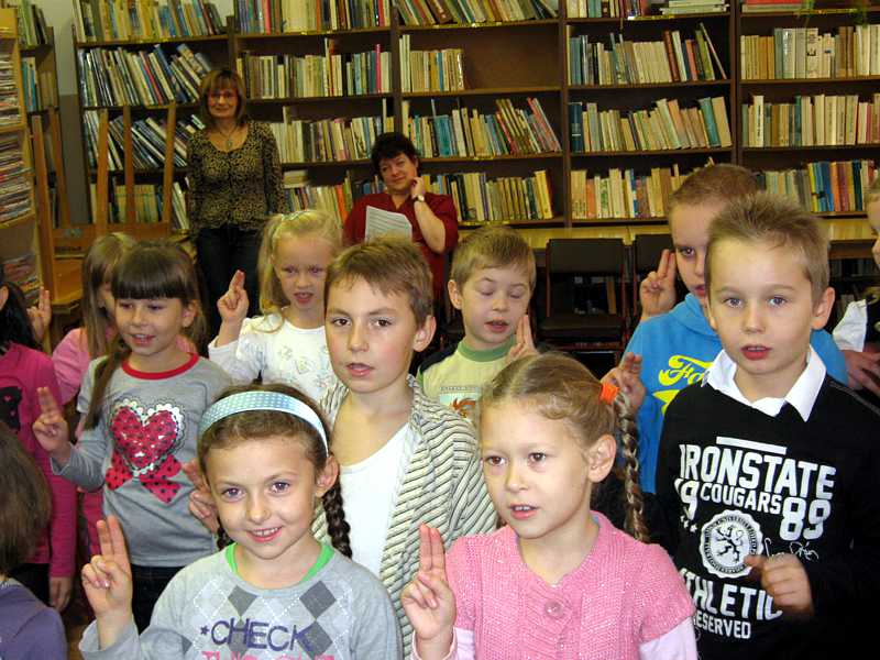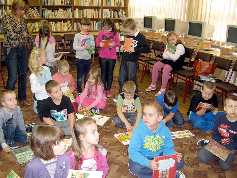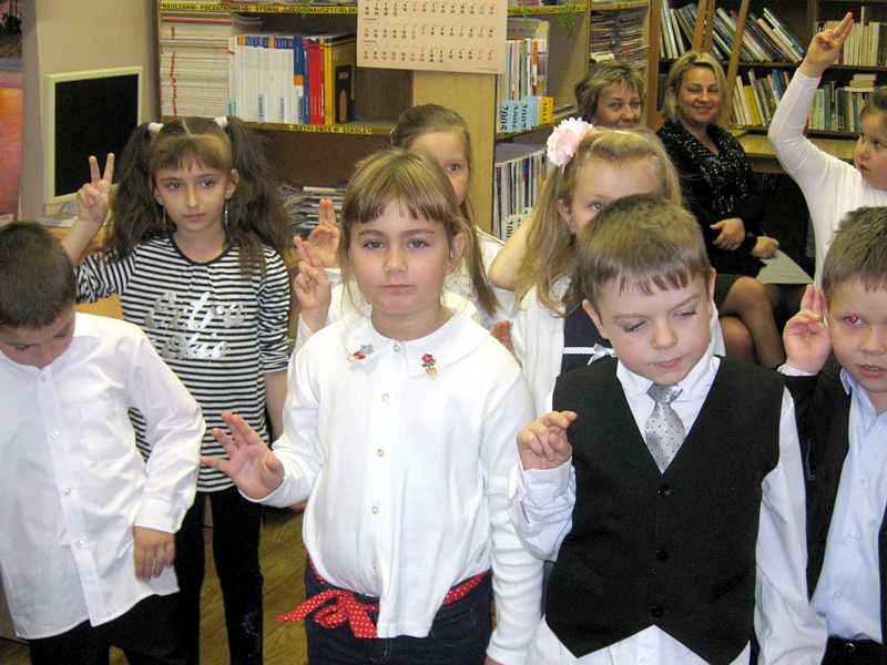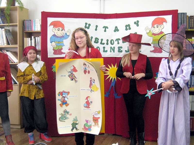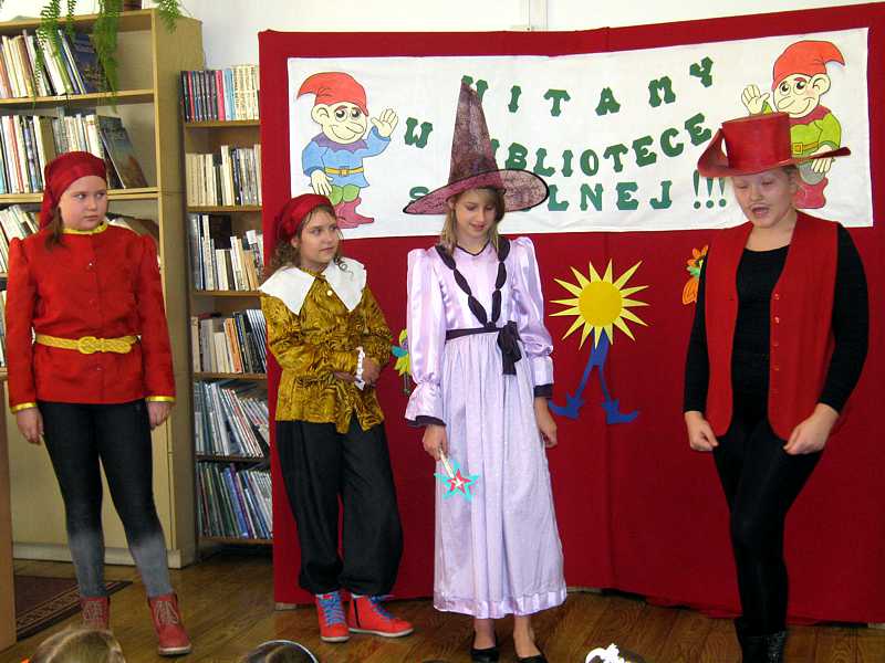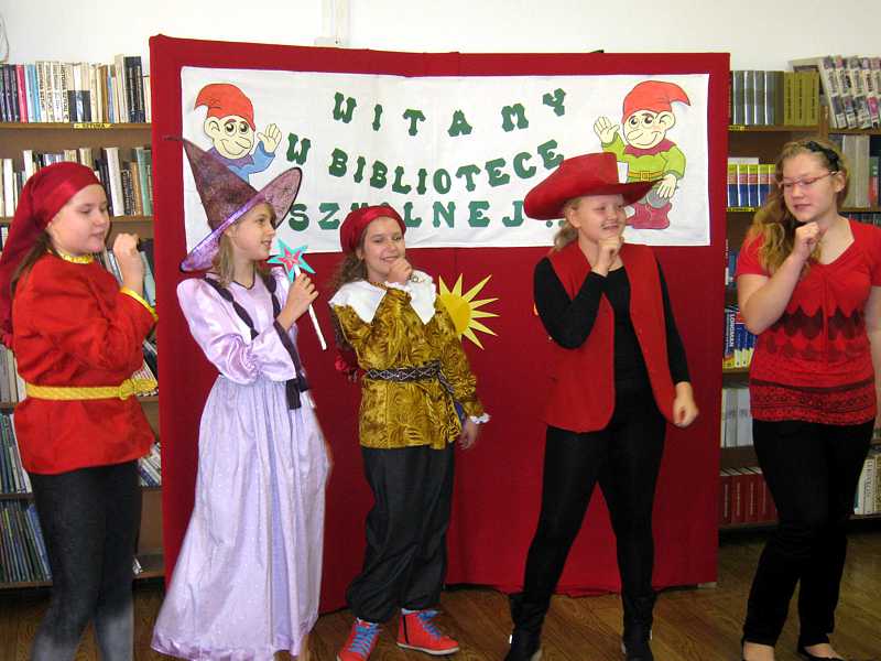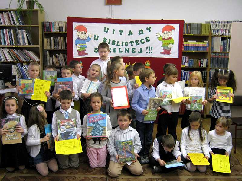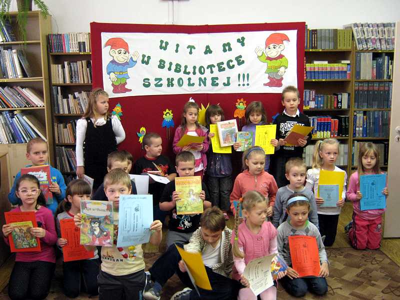W bibliotece szkolnej odbyło się Święto wszystkich Pierwszaków. Na czytelnika pasowanych zostało 45 uczniów, którzy tym samym rozpoczęli samodzielne korzystanie z biblioteki szkolnej. Pasowanie rozpoczęło się krótką historyjką. Były tam krasnale, wróżka, Kot w butach i Książka. Wierszowanej i śpiewanej historyjki dzieci wysłuchały z uwagą. Pierwszoklasiści zapamiętali dobre rady dla początkujących czytelników, których udzieliła Książka.