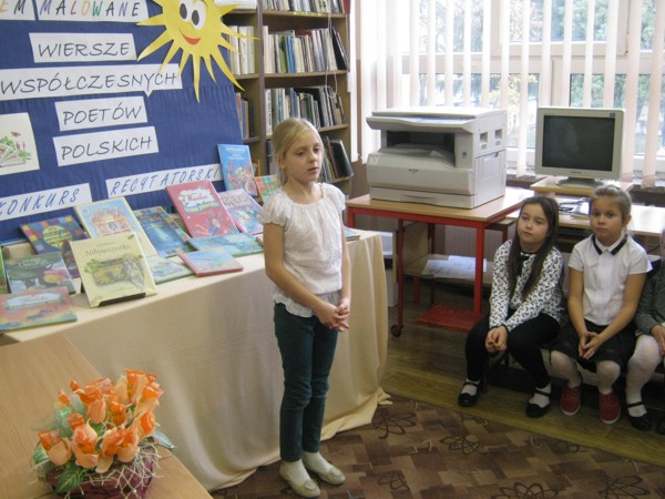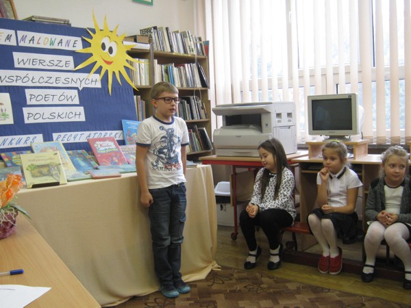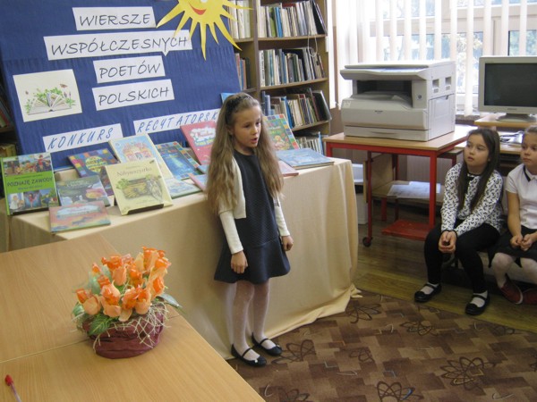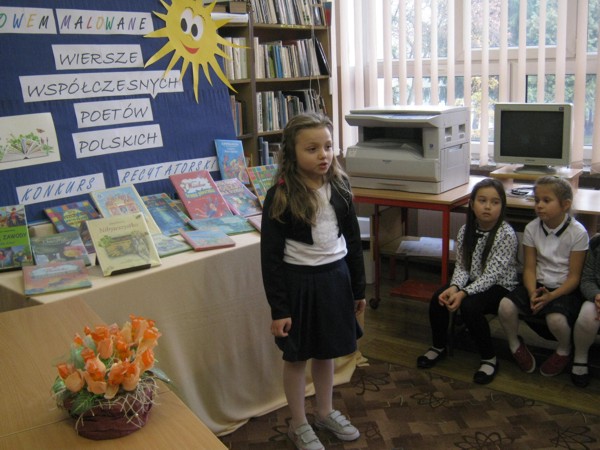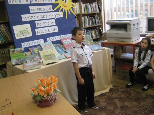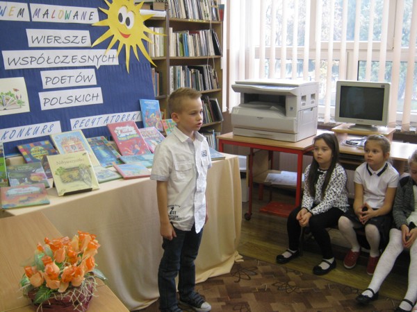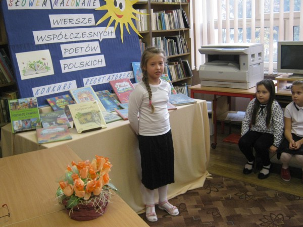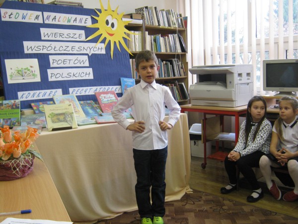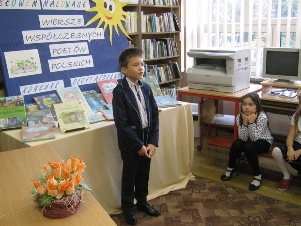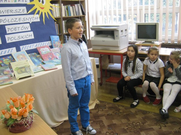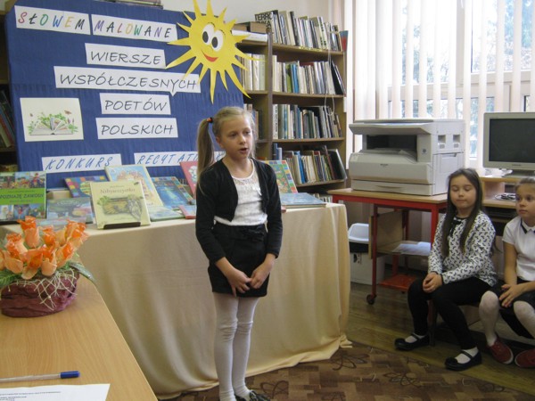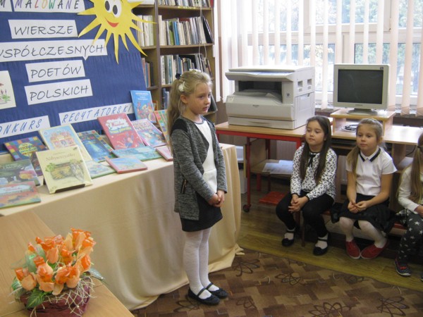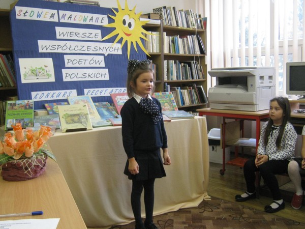 W bibliotece szkolnej odbył się konkurs recytatorski. Uczniowie klas drugich recytowali wiersze Danuty Wawiłow, Małgorzaty Strzałkowskiej, Barbary Derlickiej, Zofii Beszczyńskiej, Agnieszki Frączek oraz innych współczesnych poetów polskich.