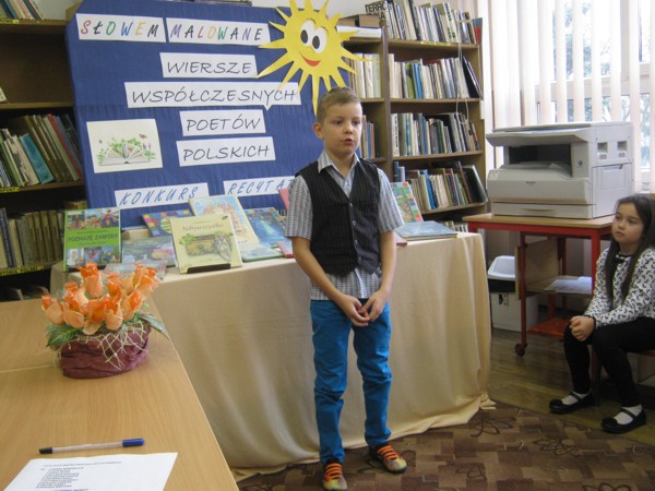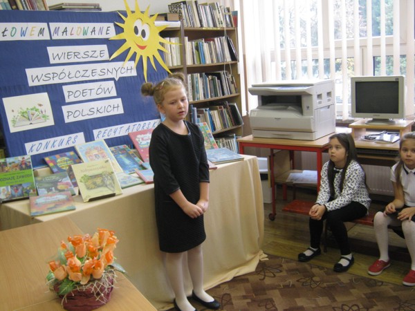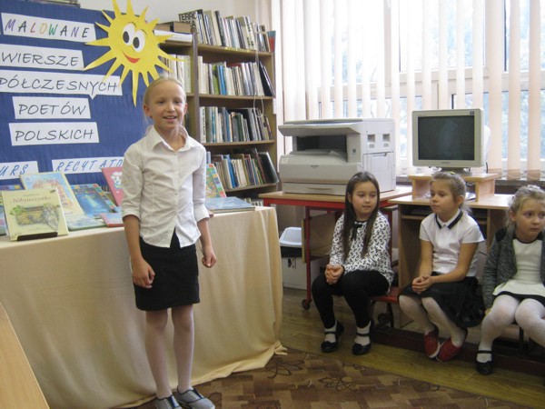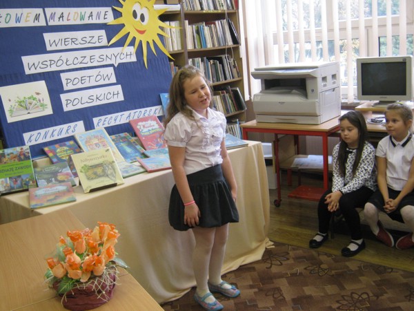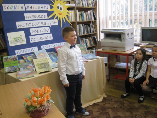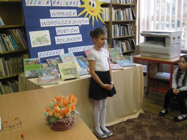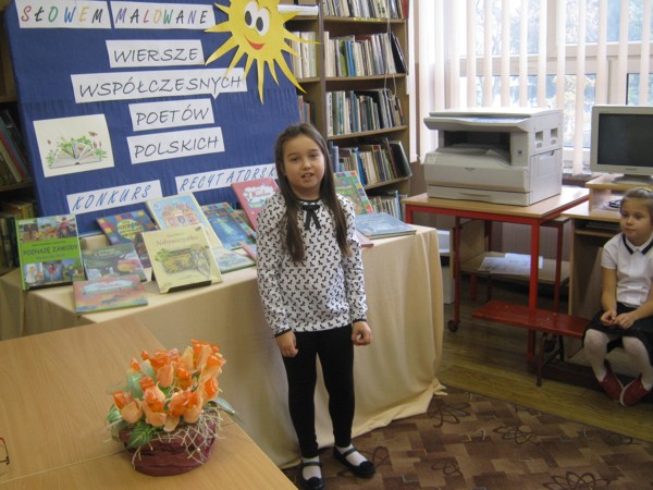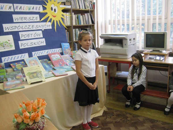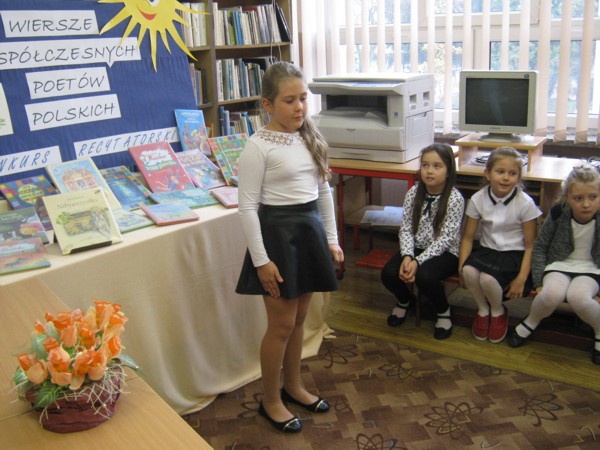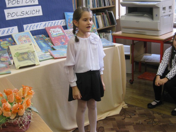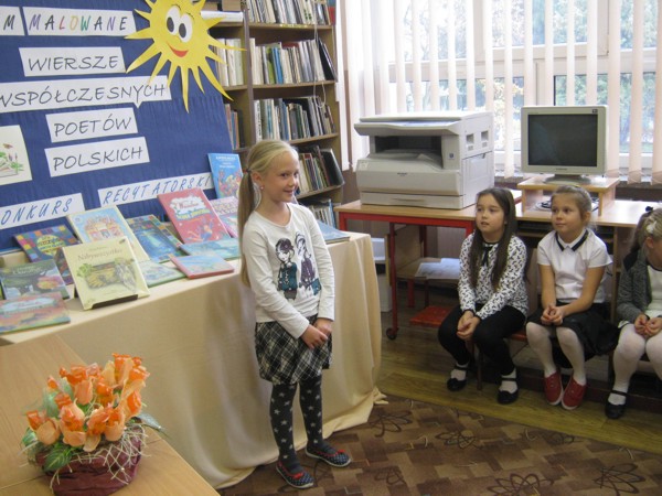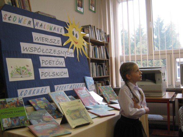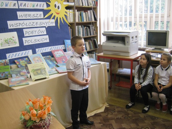 W bibliotece szkolnej odbył się konkurs recytatorski. Uczniowie klas drugich recytowali wiersze Danuty Wawiłow, Małgorzaty Strzałkowskiej, Barbary Derlickiej, Zofii Beszczyńskiej, Agnieszki Frączek oraz innych współczesnych poetów polskich.