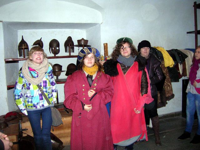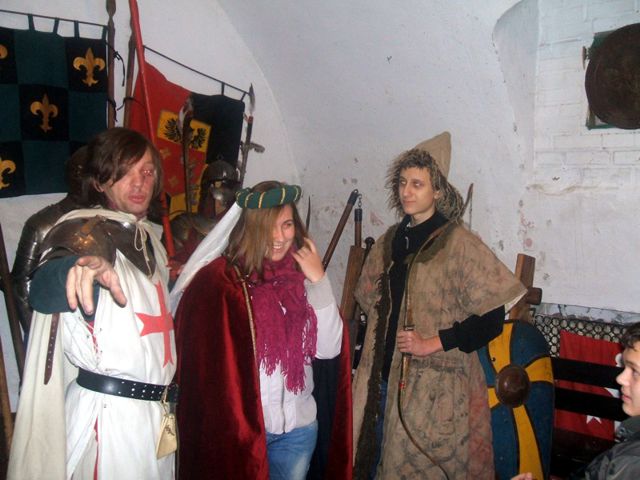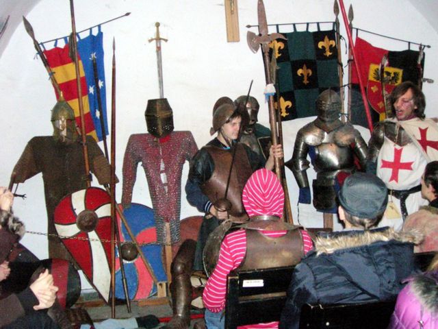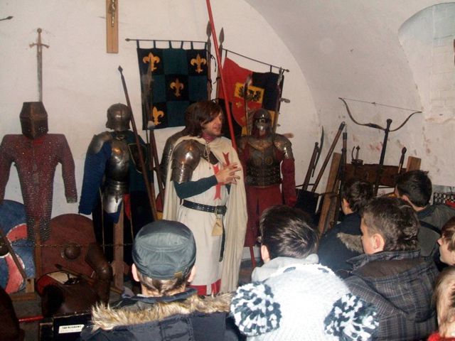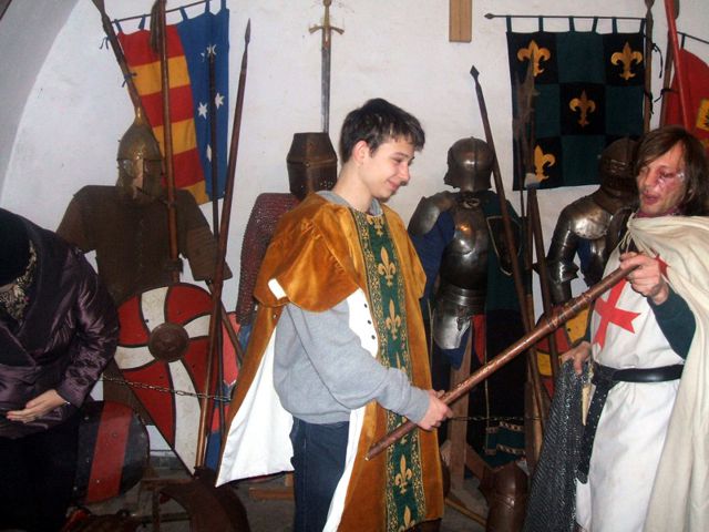 Duże wrażenie na uczestnikach wycieczki zrobił pobyt w zbrojowni, gdzie można było przymierzyć zbroje z różnych epok, dowiedzieć się ciekawostek opowiadanych w niezwykły sposób przez przewodnika należącego do bractwa rycerskiego.