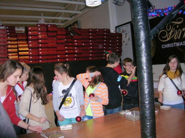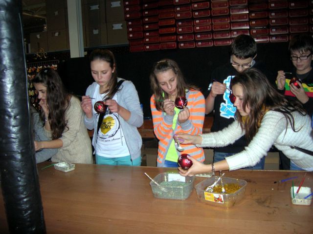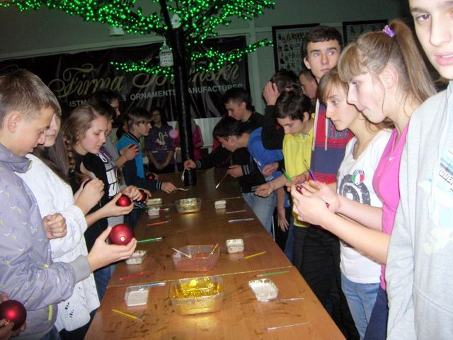 Bardzo atrakcyjnym elementem wycieczki było zwiedzanie fabryki bombek w Nowej Dębie, gdzie uczniowie własnoręcznie wykonali bombki dla siebie. Mieli też okazje zapoznać się z kolejnymi etapami produkcji ozdób choinkowych i obejrzeć pokaz ręcznego ich malowania. Później podziwiali wystawę prezentującą wzory produkowanych ozdób choinkowych, a wizytę zakończył pobyt w zakładowym sklepie na oglądaniu i kupowaniu bombek dla siebie i rodziny. Na pamiątkę wizyty w fabryce każdy uczeń otrzymał bombkę z wypisanym na niej własnym imieniem lub innym napisem oraz drugą własnoręcznie ozdobioną.