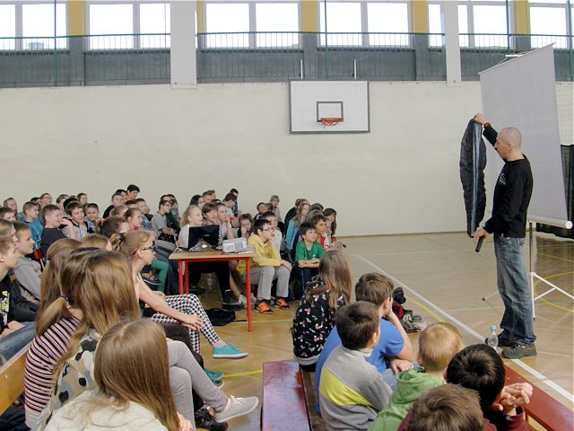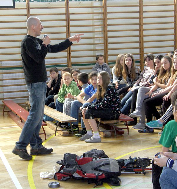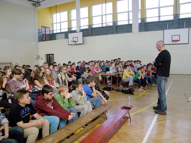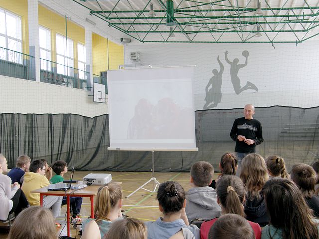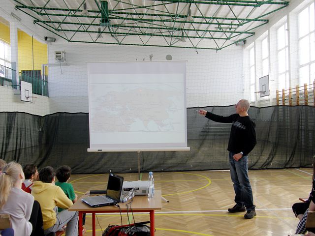 W spotkaniu z podróżnikiem wzięli udział uczniowie z klas V i VI szkoły podstawowej oraz z klas I i II gimnazjum.