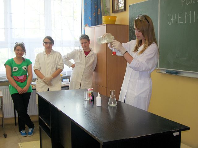Od października stworzyła się grupa uczniów systematycznie uczęszczająca na „poniedziałkowe spotkania z chemią”. Na zajęciach tych uczniowie planują i przeprowadzają eksperymenty chemiczne, wykorzystując substancje z domowej kuchni czy apteczki, oczywiście z zachowaniem zasad bezpieczeństwa.