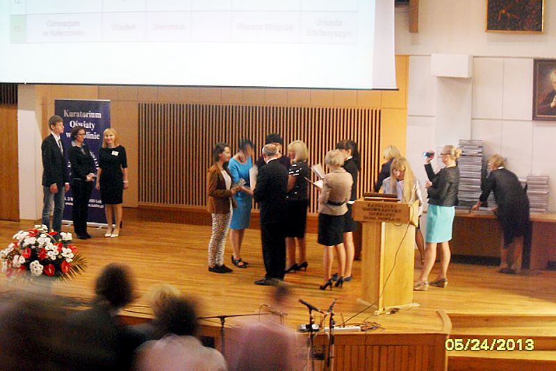 W dniu 24 maja 2013 roku w Auli Stefana Kardynała Wyszyńskiego Katolickiego Uniwersytetu Lubelskiego odbyła się wojewódzka gala podsumowania konkursów przedmiotowych. W uroczystości udział wzięli laureaci konkursów przedmiotowych, rodzice, nauczyciele i dyrektorzy szkół. Wśród przybyłych gości znaleźli się: prof. dr hab. Krzysztof Narecki prorektor ds. studenckich Katolickiego Uniwersytetu Lubelskiego, pani Jolanta Szołno - Koguc Wojewoda Lubelski, prorektorzy lubelskich uczelni, przedstawiciele władz samorządowych, Kurii Metropolitalnej w Lublinie, związków zawodowych i instytucji pożytku publicznego. Pan Krzysztof Babisz Lubelski Kurator Oświaty wręczył laureatom nagrody książkowe, a nauczycielom i dyrektorom szkół pisemne podziękowania.