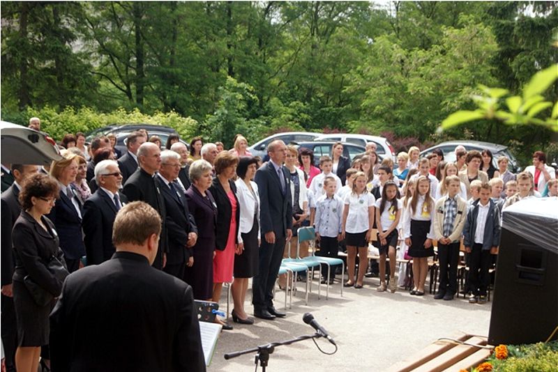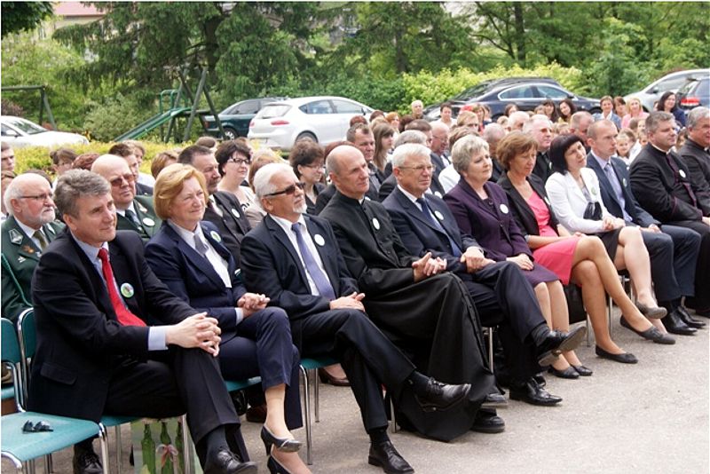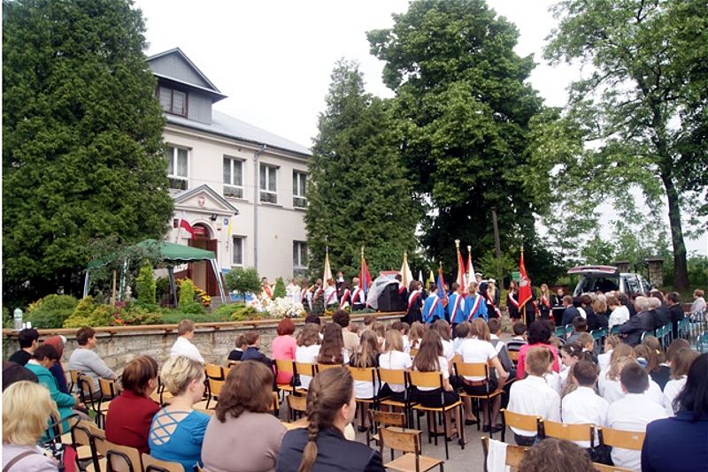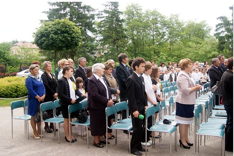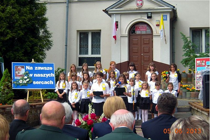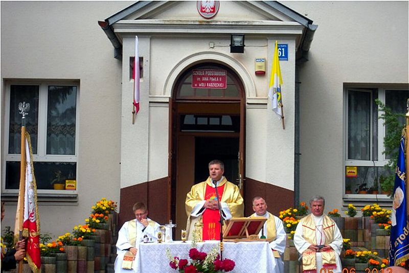 Dnia 5 czerwca br. delegacja naszej szkoły (dyr. Marzanna Bednarczuk, ks. Dziekan Wiesław Oleszek wraz z uczniami: Adą Czerw, Moniką Kozłowską, Damianem Kotem) uczestniczyła w obchodach V rocznicy nadania Szkole Podstawowej w Woli Radzięckiej imienia Jana Pawła II. Na tę uroczystość przybyli parlamentarzyści: p. Poseł Genowefa Tokarska, p. Marian Kwiatkowski Senator III i Poseł IV kadencji, p. Wojciech Żukowski poseł VI kadencji a obecnie Burmistrz Miasta -Tomaszowa Lubelskiego. Obecni byli zaproszeni księża z kapelanem Zamojsko-Lubaczowskiej Rodziny Szkół Jana Pawła II ks. prałatem dr Wiesławem Galantem. Po odprawieniu Mszy Św., uczniowie zaprezentowali część artystyczną o Błogosławionym Janie Pawle II "Na zawsze w naszych sercach". Po przedstawieniu z okazji jubileuszu popłynęły życzenia na ręce dyrektora szkoły składane przez gości. Uroczystość zakończyła się poczęstunkiem. Dziękujemy za zaproszenie i miłą rodzinna atmosferę.
