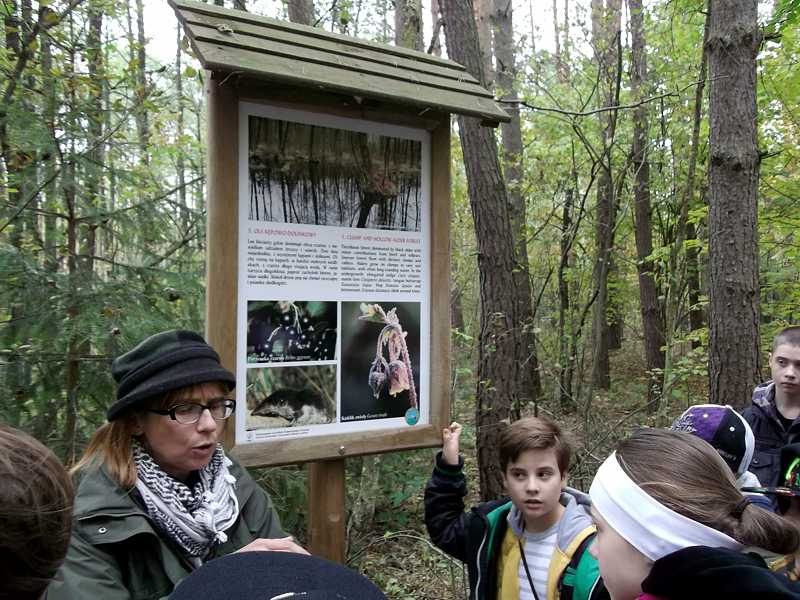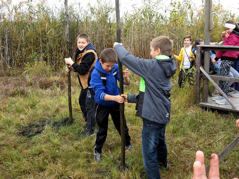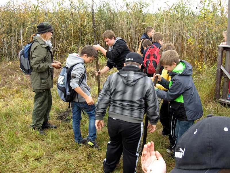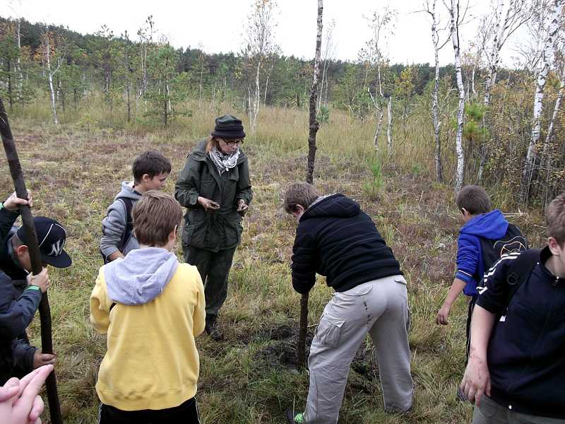 Uczniowie uczestniczyli w warsztatach edukacyjnych: „Podchody przyrody – chodzi, lata, pływa- ptak się nazywa” oraz „W krainie łosia”. Kolejną atrakcją była ścieżka przyrodnicza „Dąb Dominik”. Szczególnym elementem tej ścieżki jest torfowisko przejściowe gdzie najciekawsze dla uczniów okazało się skakanie po splei oraz wyciąganie kilkumetrowej długości kija z gytii nad jeziorem Moszne.