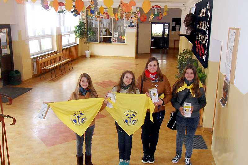 13 października br. 21 wolontariuszy – uczniów Gimnazjum nr 3 im. Jana Pawła II (Aleksandra Herda, Monika Kozłowska, Katarzyna Szlonzak, Wiktoria Ciesielczuk, Michalina Świstowska, Zofia Łyko, Kamil Wiejak, Jan Pańko, Jadwiga Słoniec, Adrian Hojda, Katarzyna Tor, Karolina Roch, Adriana Czerw, Patrycja Korgol, Ewa Brońska, Alicja Romaniszyn, Aleksandra Lewandowska, Karolina Puzio, Miłosz Orzechowski, Albert Gardyński, Paweł Szeląg, pod opieką p. Marzanny Bednarczuk – pełnomocnika zbiórki kwestowało na rzecz Fundacji. Zebrane pieniądze będą przeznaczone na wsparcie edukacyjne uzdolnionej młodzieży.