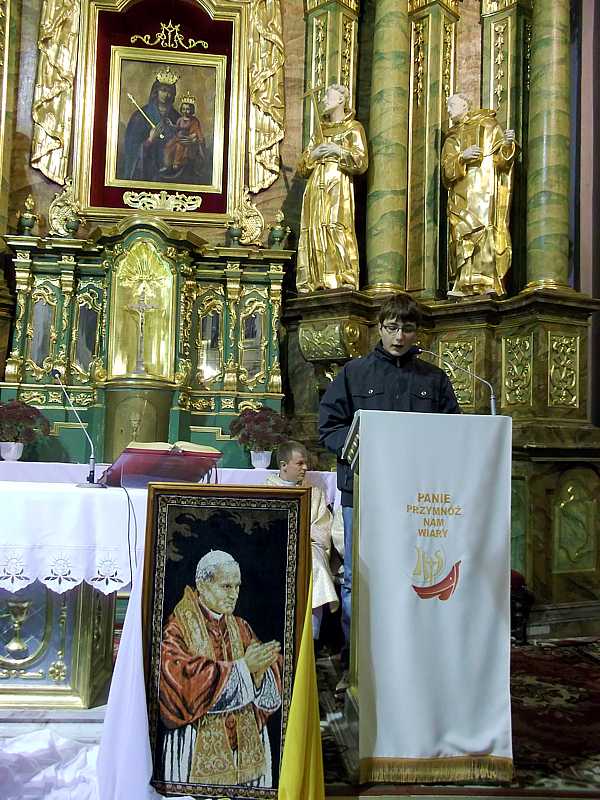 Dopełnieniem Święta Patrona była modlitwa różańcowa, z rozważaniami z nauczania Jana Pawła II do młodzieży, w kościele św. Mikołaja o godz. 17.00 prowadzona przez uczniów naszego gimnazjum.