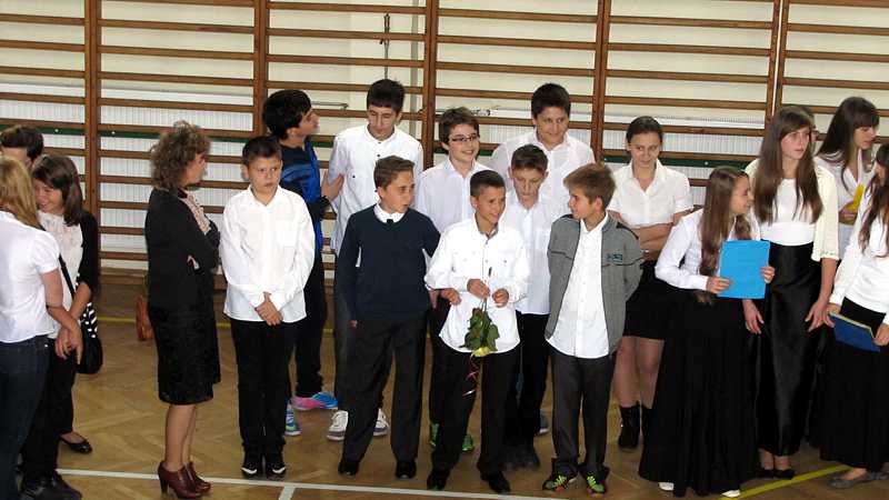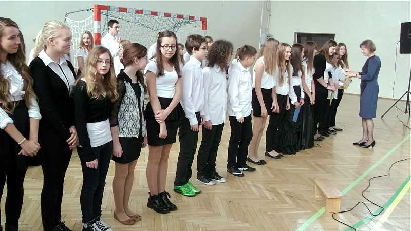 Na zakończenie uroczystości p. wicedyrektor Marzanna Bednarczuk podziękowała wszystkim, którzy zaangażowali się w przygotowanie uroczystości i wręczyła podziękowania uczniom zaangażowanym podczas zbiórki żywności „Pełny Tornister” w dniach 4 i 5 października. W zbiórce uczestniczyło 46 wolontariuszy. Podziękowania otrzymało również 21 wolontariuszy kwestujących 13 października na rzecz Fundacji „Dzieło Nowego Tysiąclecia”, wspierającej uzdolnioną młodzież, pochodzącą z niezamożnych rodzin.