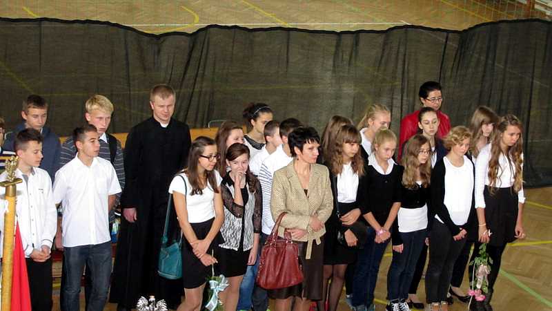 16 października br. obchody Święta Patrona Gimnazjum rozpoczęły się o godz. 8.00 uroczystą Mszą świętą w Kościele św. Mikołaja z udziałem społeczności gimnazjum i pocztów sztandarowych gimnazjum i szkoły podstawowej. Mszy świętej przewodniczył ks. Paweł Kubiszyn a okolicznościową homilię wygłosił ks. Marcin Jakubiak.