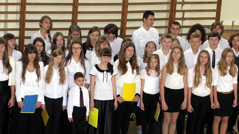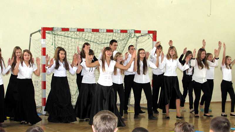 Po przemówieniu p. dyrektor rozpoczęła się uroczystość ślubowania klas pierwszych. Złożono kwiaty pod tablicami pamiątkowymi bł. Jana Pawła II. Następnie uczniowie pod kierunkiem pań: Marzeny Jędruszczak i Anety Franke zaprezentowali montaż słowno muzyczny nawiązujący do hasła XIII Dnia Papieskiego „Jan Paweł II – Papież Dialogu”, pt.: „Abyśmy wszyscy stanowili jedno”.