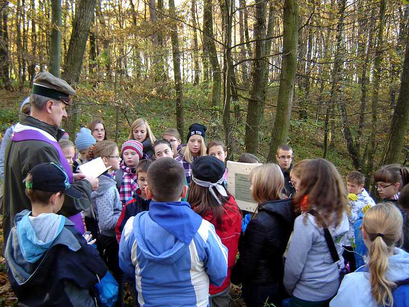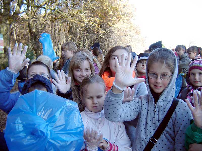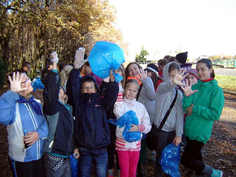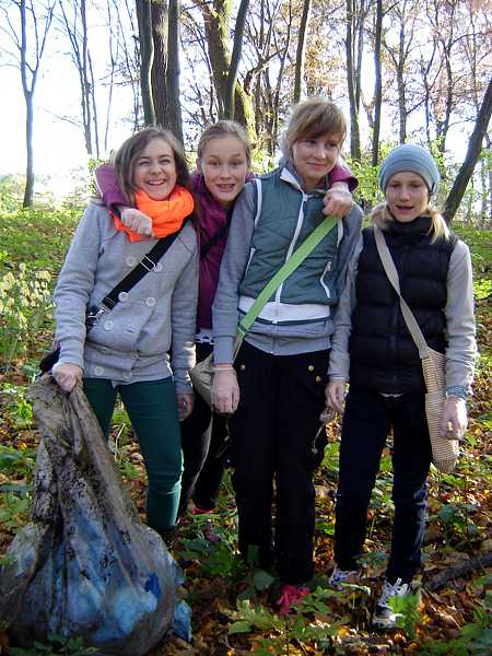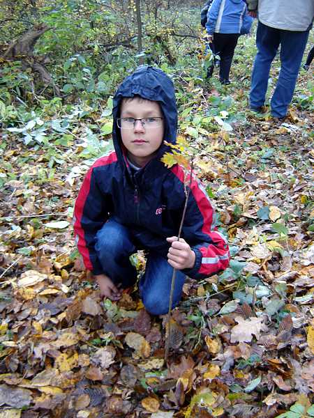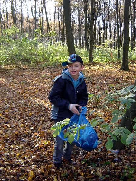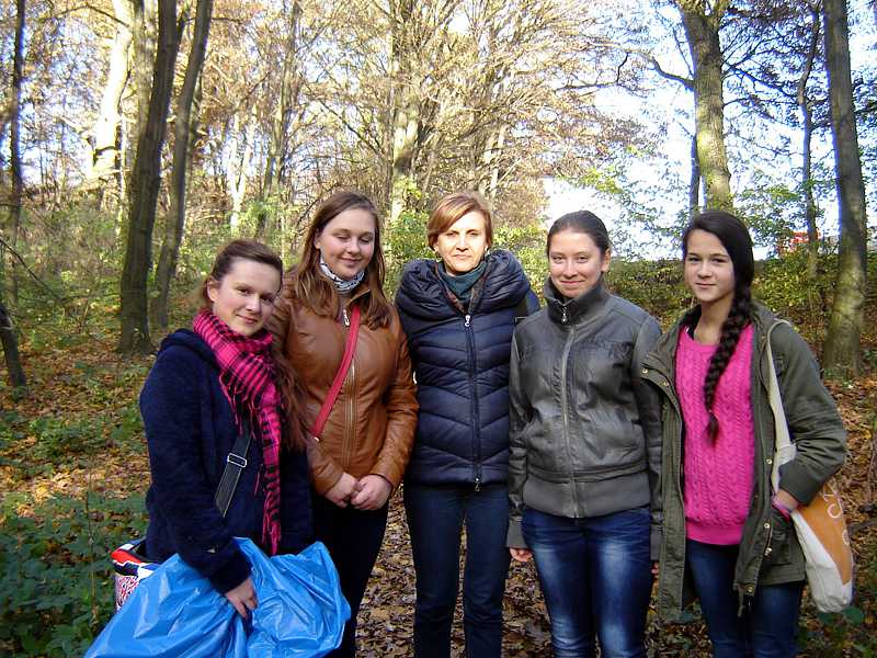 Następnie uczniowie pod opieką nauczycieli, pracowników nadleśnictwa oraz stowarzyszenia „Razem” zebrali ok. 150 kg śmieci różnego pochodzenia. Potem posadzono 45 dębów. Pomimo zmęczenia, dobre humory nie opuszczały wszystkich, było miło i radośnie.