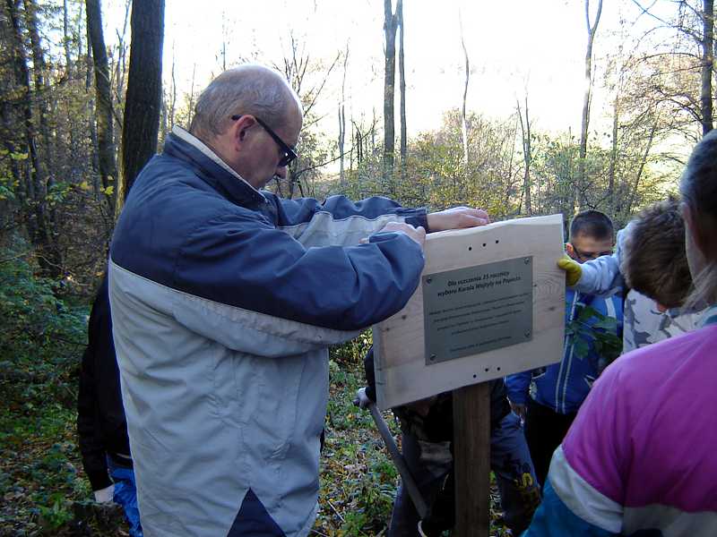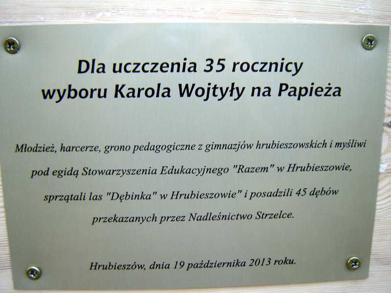 Tegoroczną 35. Rocznicę objęcia Stolicy Piotrowej przez Papieża Polaka uczczono 19 października. W „malowany kolorami” piękny jesienny sobotni dzień w lesie Dębinka zgromadziła się młodzież wraz z opiekunami. Na wstępie Duszpasterz Leśników ks. Dziekan Wiesław Oleszek poświecił pamiątkową tablicę, przygotowaną przez Nadleśnictwo Strzelce i Stowarzyszenie Edukacyjne "Razem" w oraz myśliwych z WKŁ nr 110 "Orlik" w Hrubieszowie.