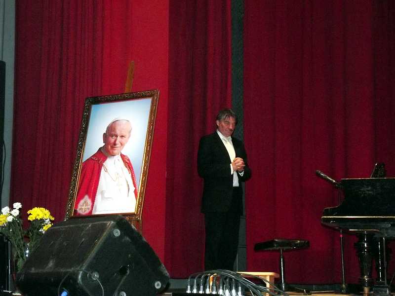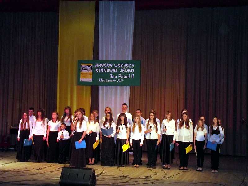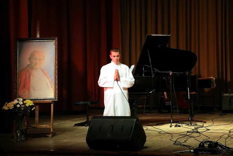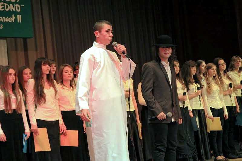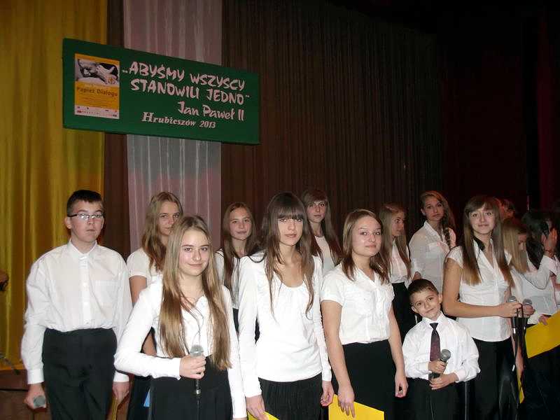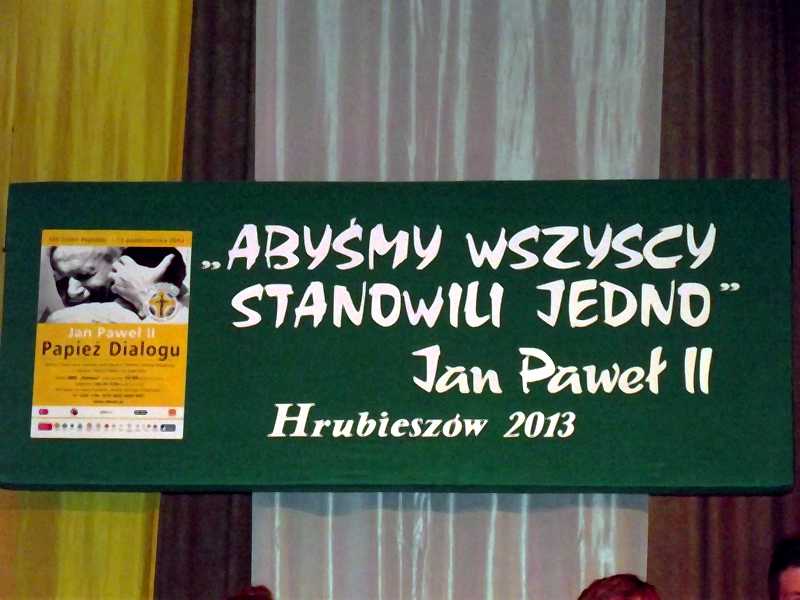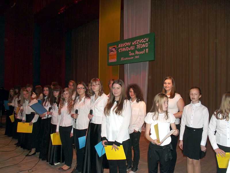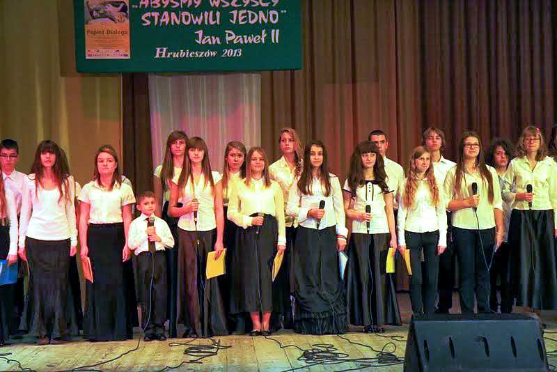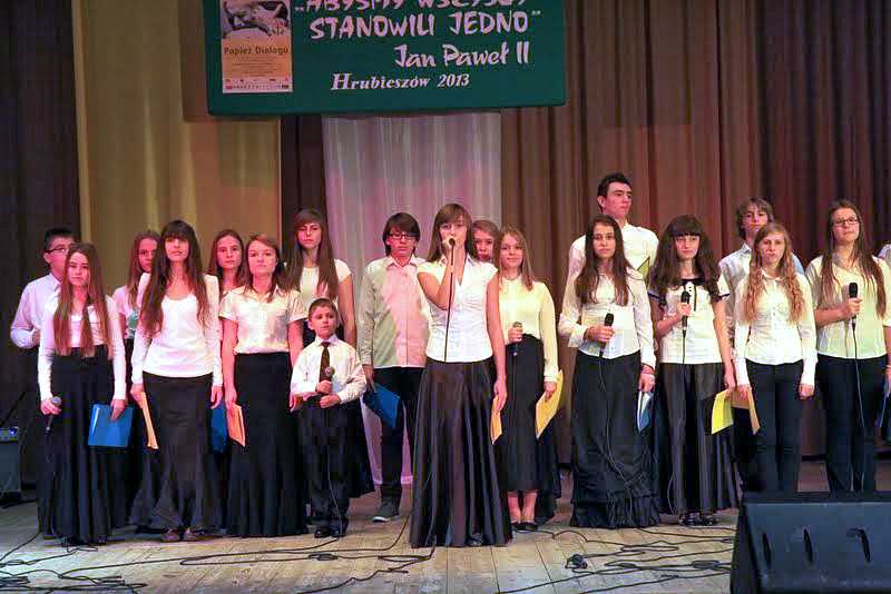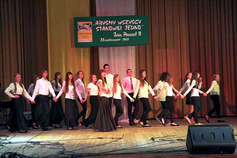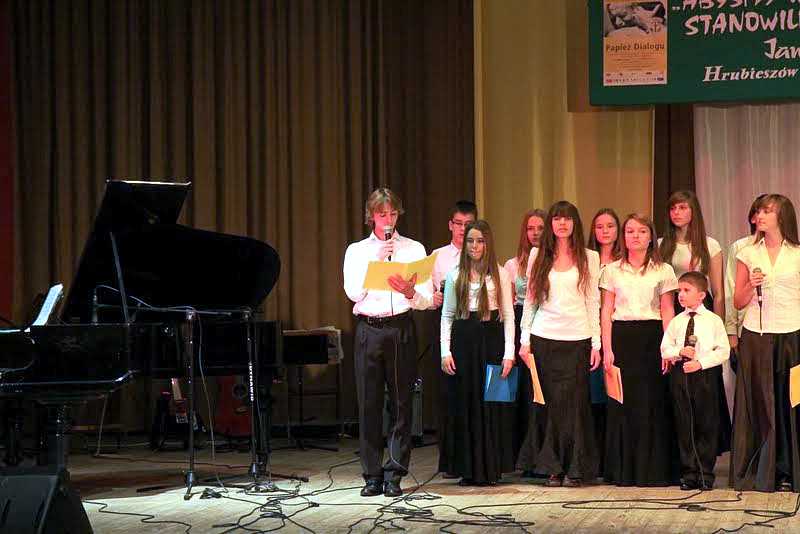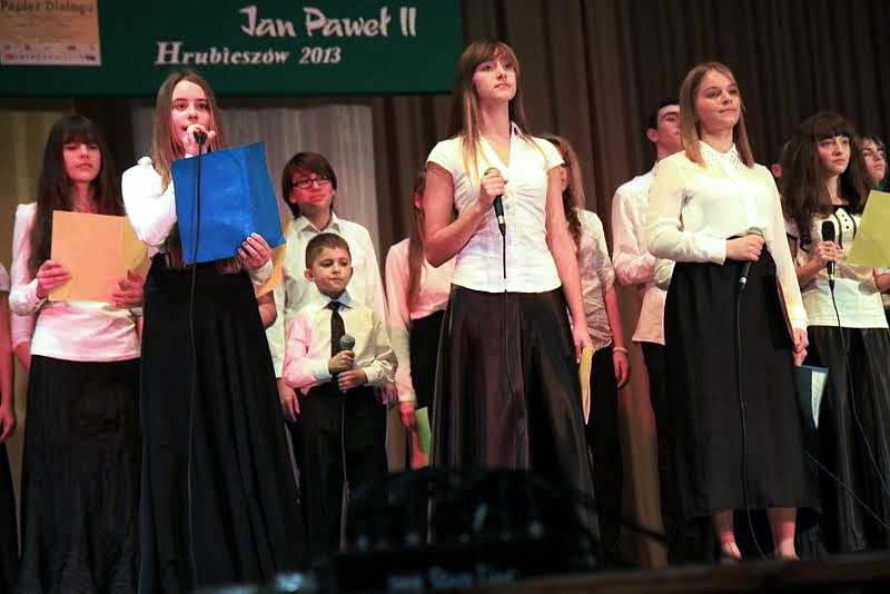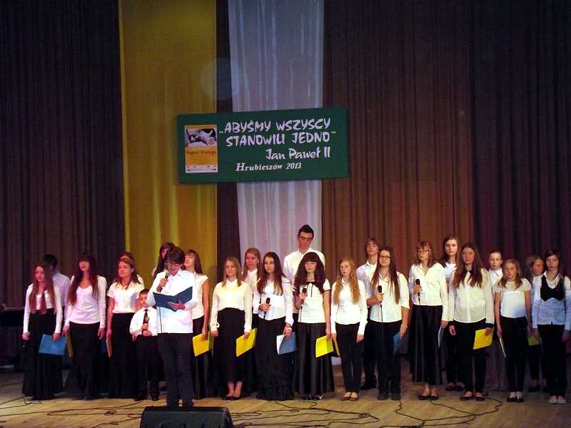 Koncert, montażem słowno – muzycznym rozpoczęli uczniowie Gimnazjum nr 3 im. Jana Pawła II, przygotowani przez p. Anetę Franke i Marzenę Jędruszczak. Następnie wystąpił zespół wokalno – instrumentalny „Lechici” pod przewodnictwem p. Leszka Opały. Był piękny śpiew, przesłania i myśli Papieża, Wiersze nawiązywały do tematyki dialogu: