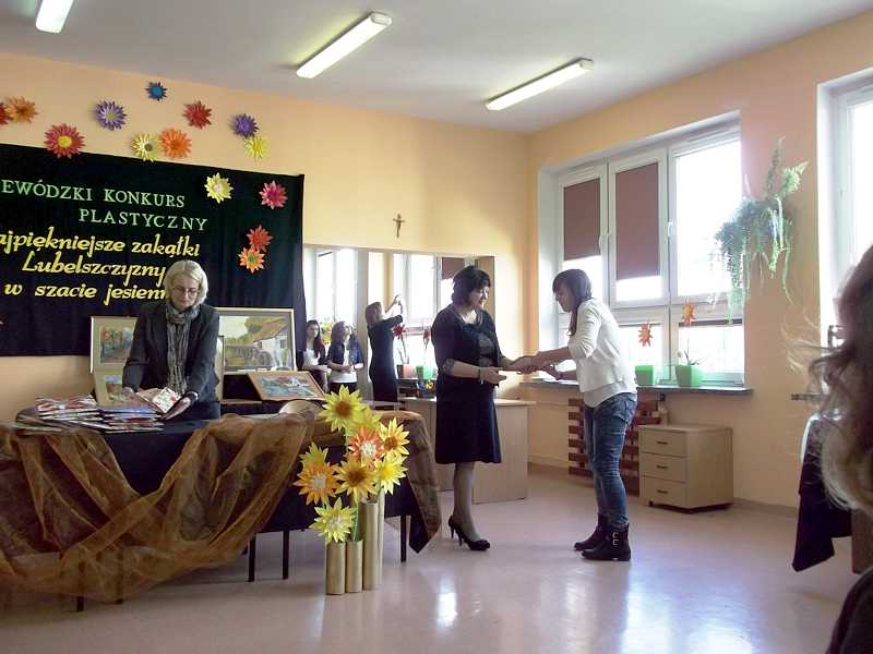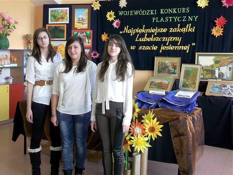 "Najpiękniejsze zakątki Lubelszczyzny w szacie jesiennej” to hasło Wojewódzkiego Konkursu Plastycznego dla uczniów gimnazjum, który cyklicznie organizuje Zespół Szkół w Werbkowicach pod patronatem Marszałka Województwa Lubelskiego. W obecnym roku szkolnym do konkursu przystąpiło 15 szkół, a komisja konkursowa oceniała 104 nadesłane prace. Wśród laureatów i wyróżnionych znalazły się trzy uczennice Zespołu Szkół Miejskich nr 3 w Hrubieszowie.