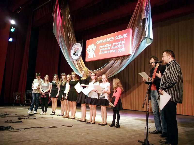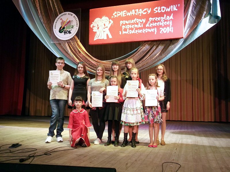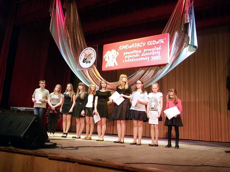 W II etapie konkursu zaśpiewa Marysia Łyko ucz. kl. III a Gimnazjum. Jurorzy docenili też zespół wokalny, który otrzymał wyróżnienie (na etapie powiatowym były tylko wyróżnienia, nagrodami zaś nazwano kwalifikację do II etapu konkursu). Należy dodać, że od kilku lat etap wojewódzki jest tylko dla solistów.
