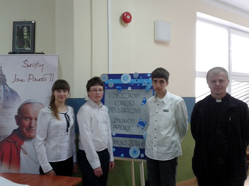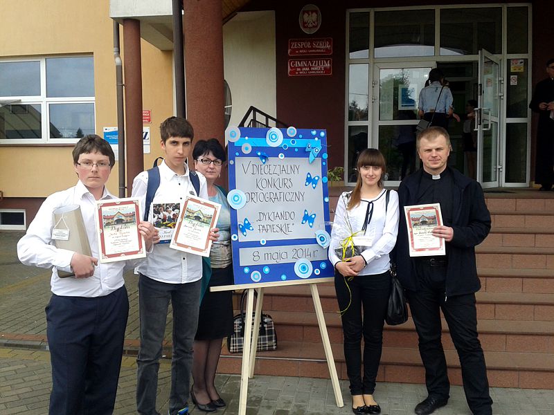 8 maja 2014 roku w Gimnazjum im. Jana Pawła II w Woli Uhruskiej odbył się piąty Diecezjalny Konkurs Ortograficzny „Dyktando Papieskie”. Motto konkursu stanowiły słowa Jana Pawła II: „Język tworzy wspólnotę, sprawia, że czujemy się związani z narodem, ludem lub plemieniem. Poprzez język uczestniczymy w tej wspólnocie”. Nasi uczniowie Katarzyna Szlonzak, Marcin Gasior i Jacek Kozak świetnie sobie poradzili i osiągnęli bardzo dobre miejsca w kategorii gimnazjum: Jacek Kozak otrzymał I miejsce a Marcina Gąsiora wyróżniono.
