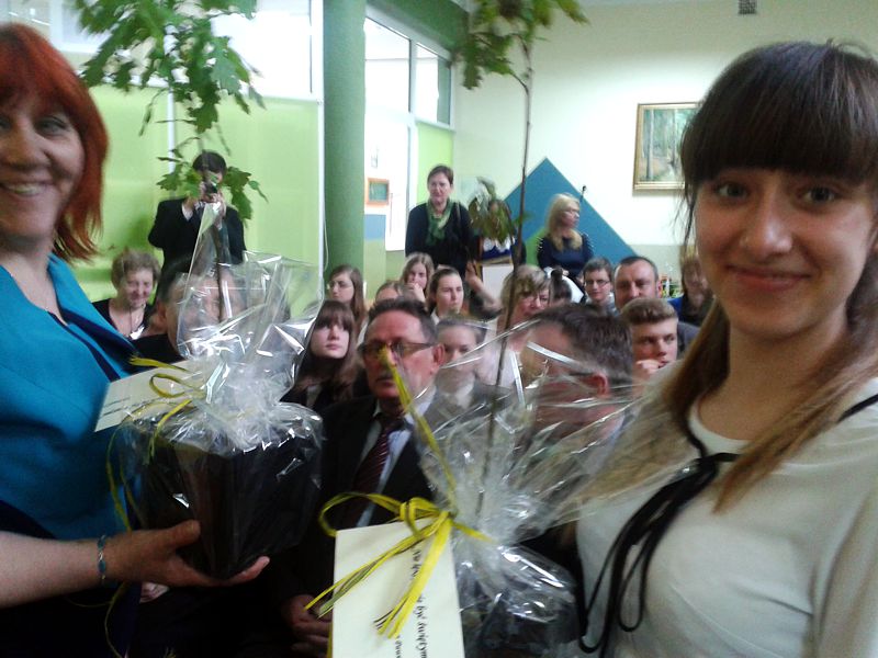 Laureatom wręczono dyplomy i nagrody książkowe a każda szkoła na pamiątkę kanonizacji Papieża Polaka otrzymała symboliczne drzewko dębu z byłego Niemieckiego Obozu Zagłady w Sobiborze.