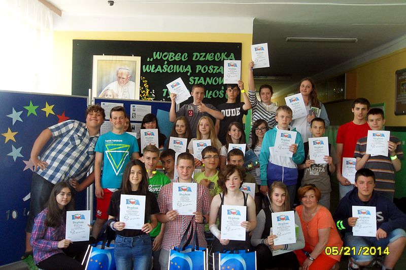 Od roku 2006 do 2013, do naszego regionu trafiło blisko 6 miliardów euro z tych dwóch unijnych programów. Swoją wiedzę o funduszach europejskich mogli poszerzyć zapoznając się ze skryptem wiedzy o funduszach europejskich. Pomoce te zostały przygotowane przez Urząd Marszałkowski. Uczniowie przygotowali wystawę poświęconą historii Unii Europejskiej, zrealizowali projekty edukacyjne nt. „Co dało Polakom i mieszkańcom naszego miasta wejście do Unii Europejskiej”. Finałowym wydarzeniem był konkurs wiedzowy, w którym wzięło udział 34 gimnazjalistów.