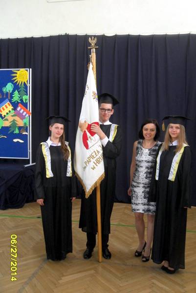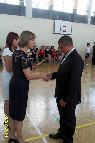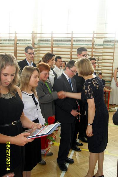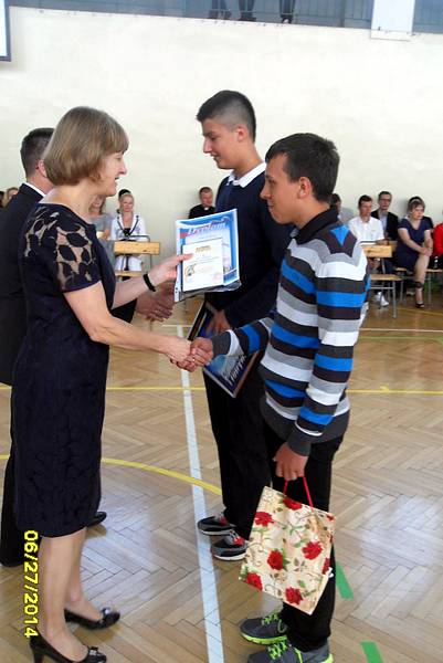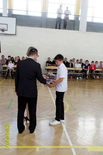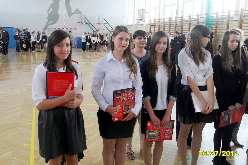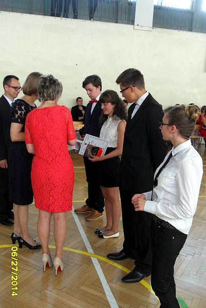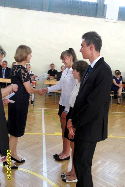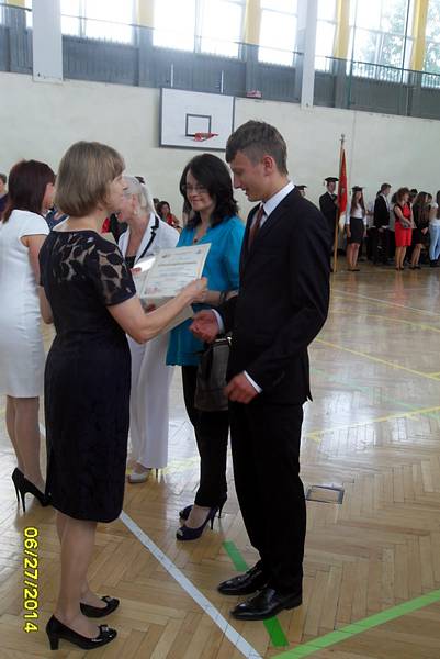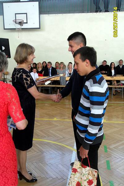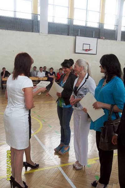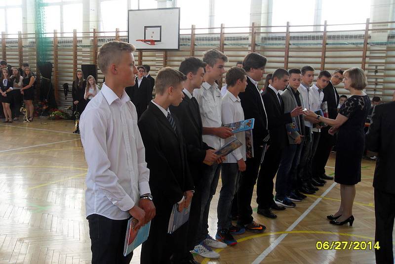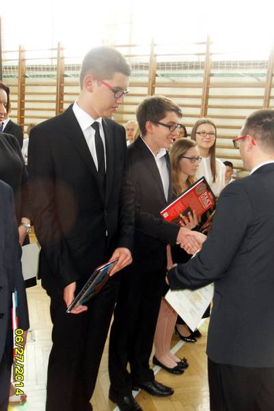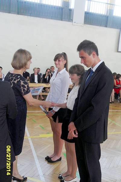 Na zakończenie uroczystości uczniowie otrzymali nagrody książkowe i dyplomy za wyniki w nauce, osiągnięcia w sporcie, w konkursach przedmiotowych i artystycznych, za działalność społeczną, charytatywną oraz zaangażowanie w agendach uczniowskich. Nagrody ufundowane zostały przez Radę Rodziców, za które p. dyrektor złożyła podziękowanie obecnej na uroczystości przewodniczącej Rady Rodziców p. Beacie Pakos.