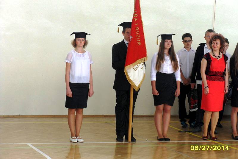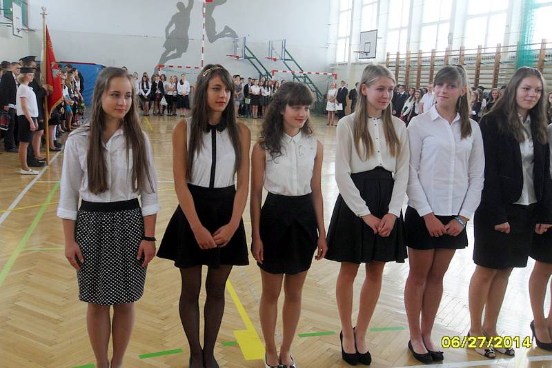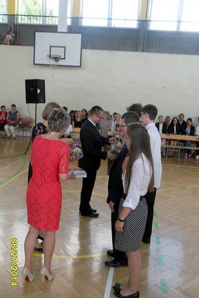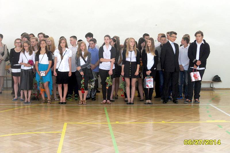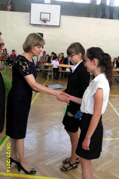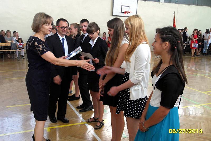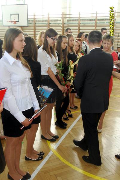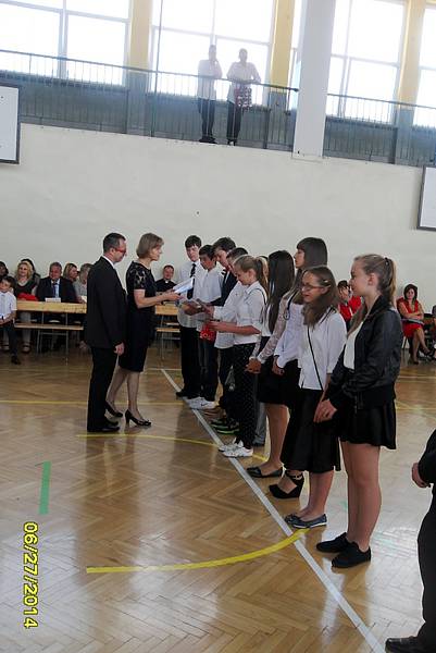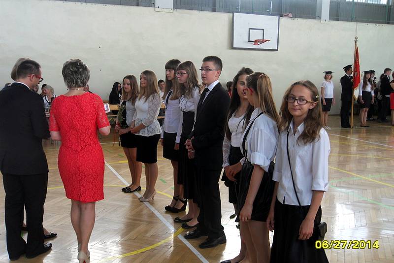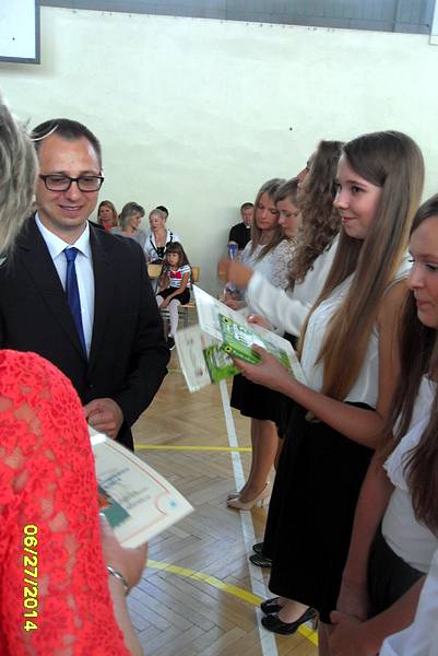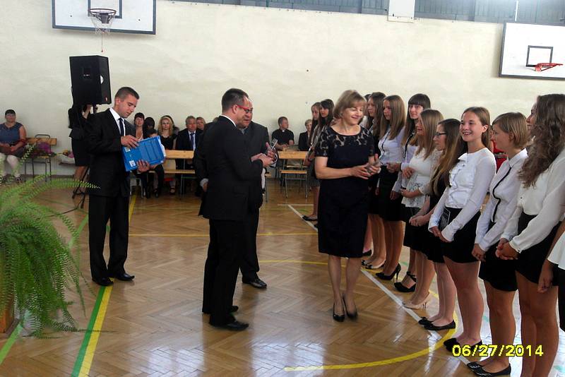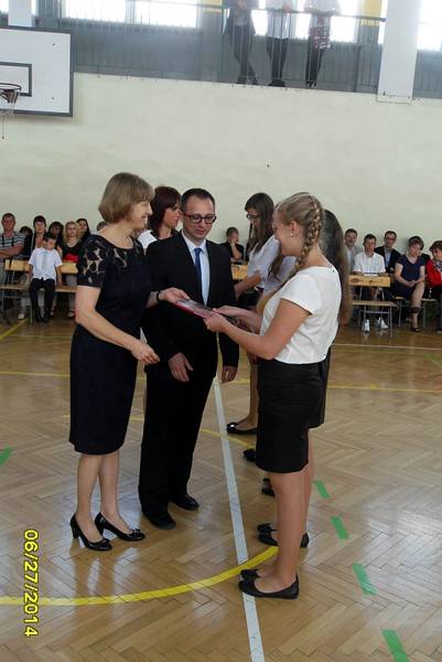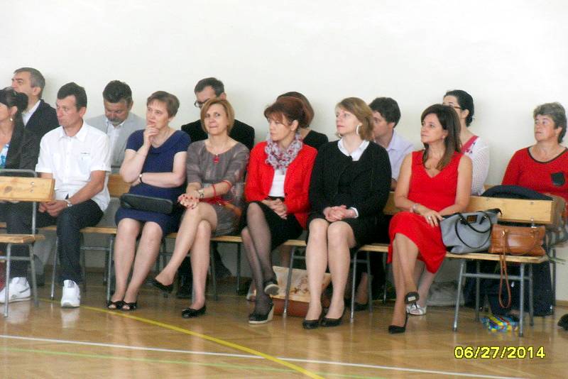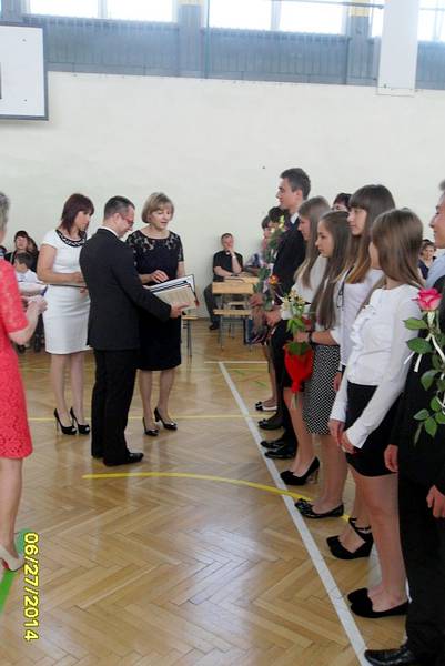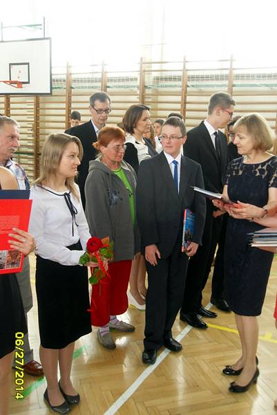 W uroczystości dla gimnazjalistów, która rozpoczęła się o godz. 8.00 uczestniczył p. Szymon Patkowski, Naczelnik Wydziału Oświaty, Kultury i Sportu przy Urzędzie Miasta. Na drugą cześć dla uczniów szkoły podstawowej o godz. 10.00 przybył p. Paweł Perelmuter, zastępca Burmistrza Miasta. W swoich przemówieniach dziękowali gronu pedagogicznemu za ich pracę, i za zaangażowanie społeczności szkolnej w działania lokalne a uczniom życzyli satysfakcji z otrzymanych świadectw i udanych wakacji.