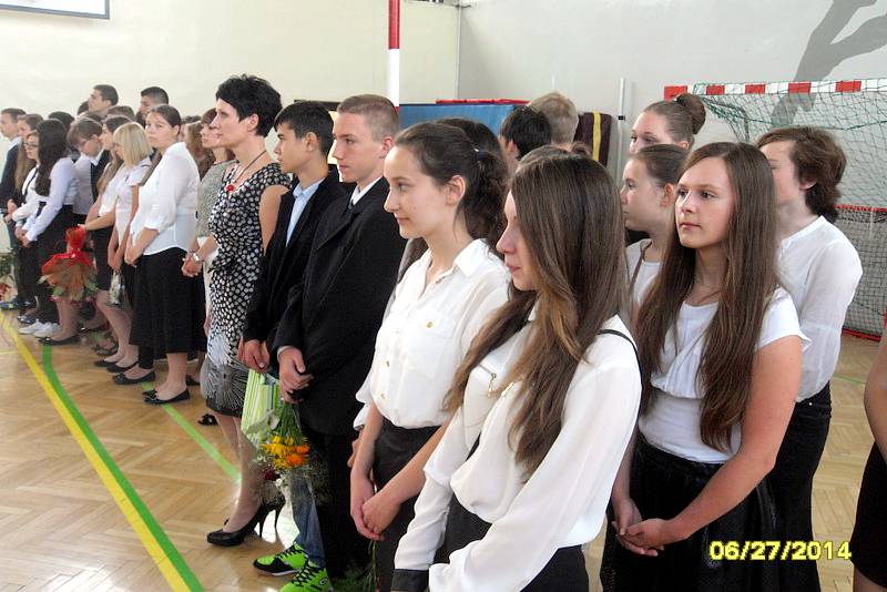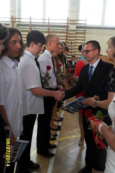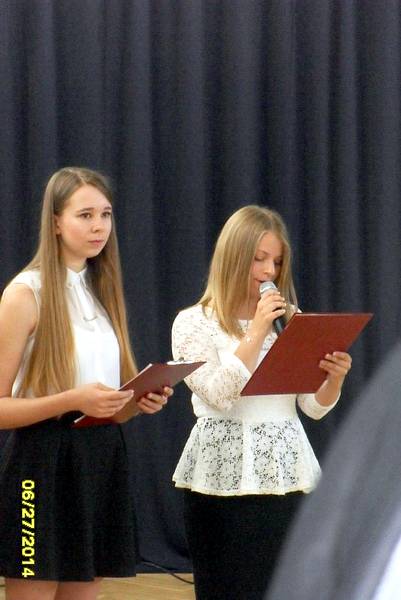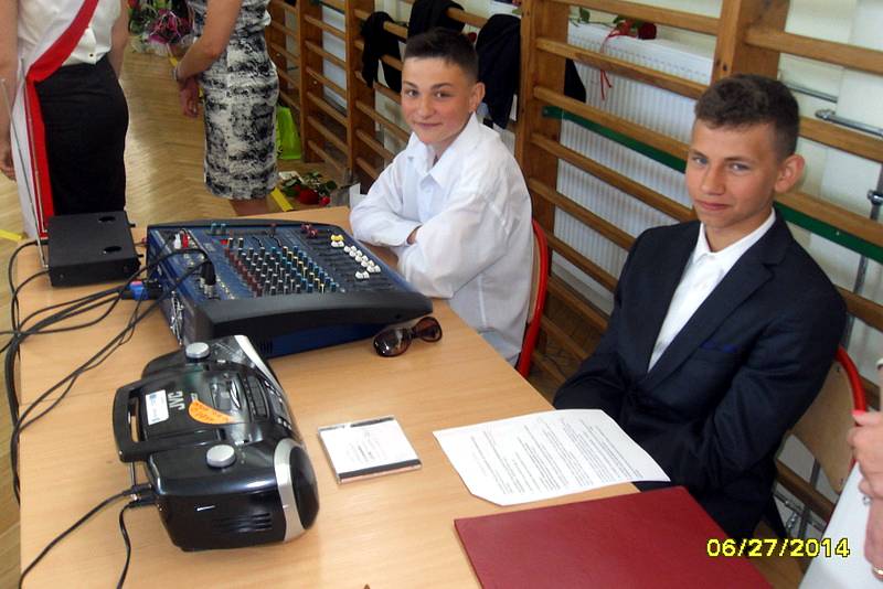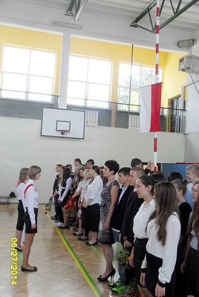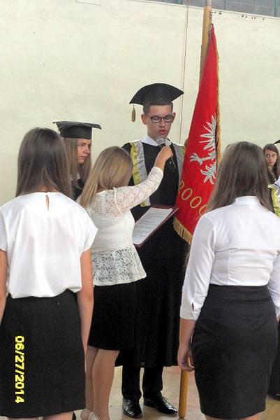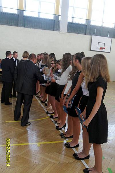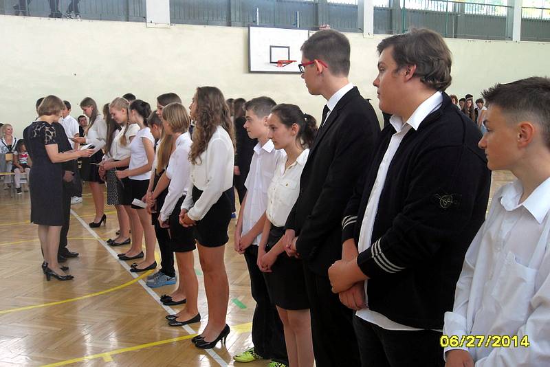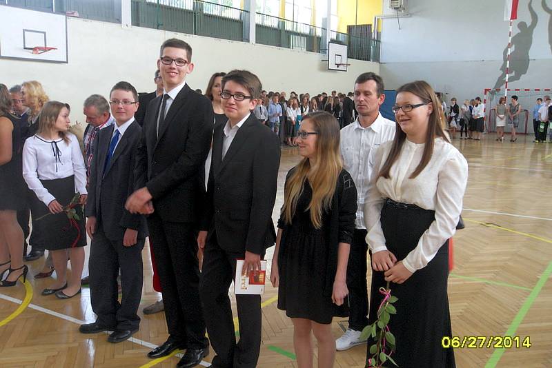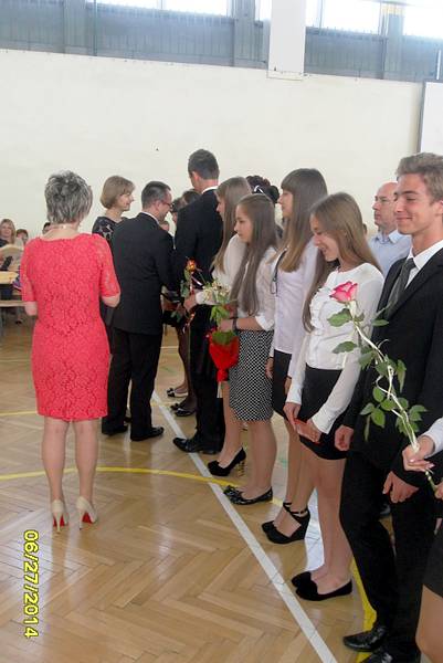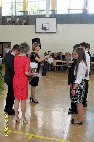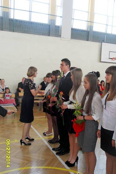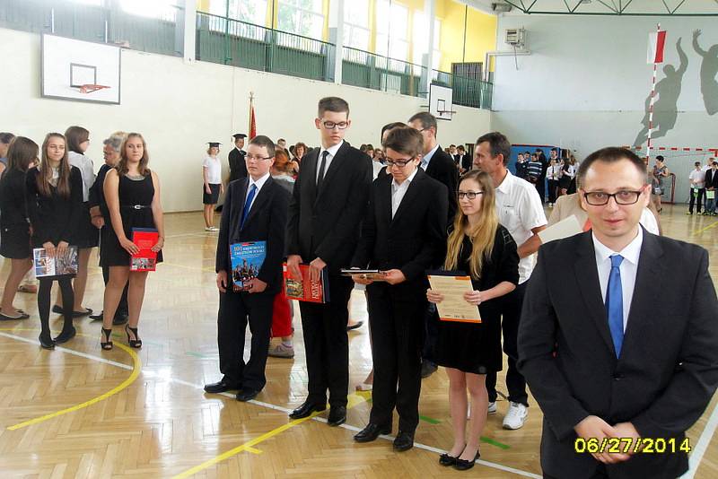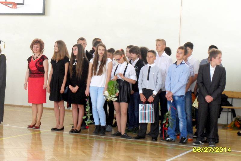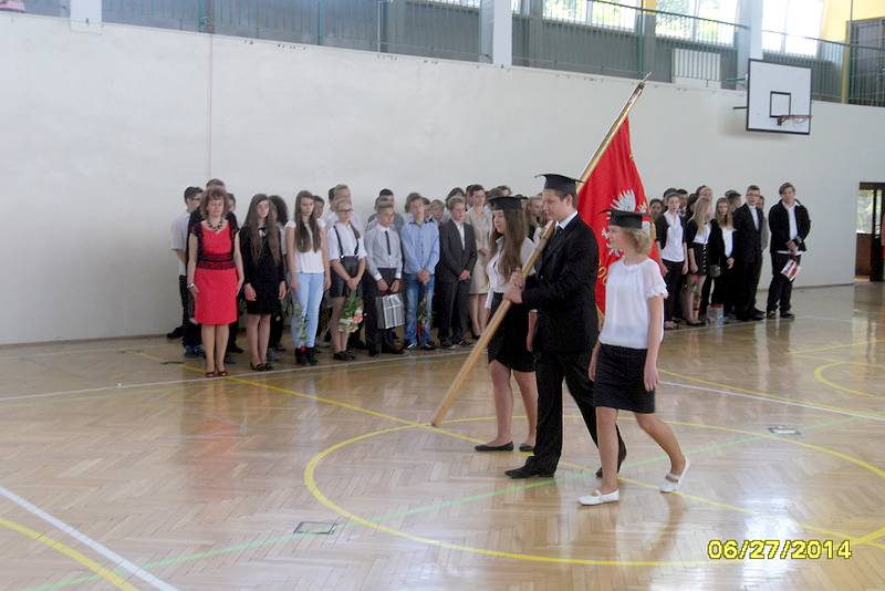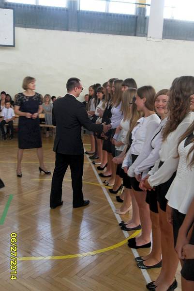 W uroczystości dla gimnazjalistów, która rozpoczęła się o godz. 8.00 uczestniczył p. Szymon Patkowski, Naczelnik Wydziału Oświaty, Kultury i Sportu przy Urzędzie Miasta. Na drugą cześć dla uczniów szkoły podstawowej o godz. 10.00 przybył p. Paweł Perelmuter, zastępca Burmistrza Miasta. W swoich przemówieniach dziękowali gronu pedagogicznemu za ich pracę, i za zaangażowanie społeczności szkolnej w działania lokalne a uczniom życzyli satysfakcji z otrzymanych świadectw i udanych wakacji.