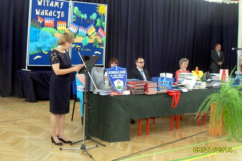 Uczniowie Gimnazjum nr 3 im. Jana Pawła II podsumowali rok szkolny i rozpoczęli wakacje. 17 czerwca br. żegnając kolejny rok nauki, społeczność szkolna wzięła udział we mszy świętej, dziękując za wszystkie otrzymane w ciągu roku łaski. 27 czerwca przyszedł czas na podziękowania, rozdanie świadectw, nagród i dyplomów.