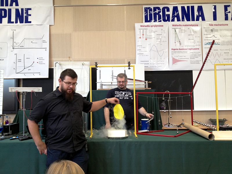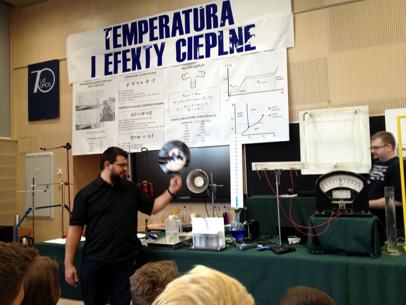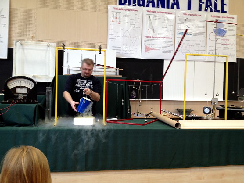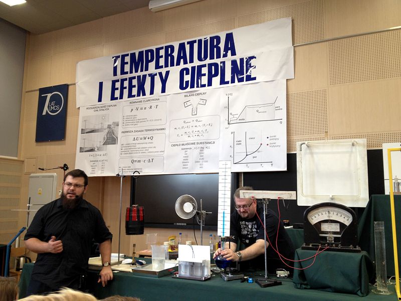 Pokazy odbyły się w dwóch aulach uczelni. W tym roku w programie znalazły się: „Poprzez zabawę do praw fizyki”, „Drgania i fale”, „A jednak się kręci”, „Temperatura i efekty cieplne”. Nasi uczniowie brali czynny udział w przeprowadzanych doświadczeniach. Pokazy przebiegały w atmosferze zabawy i z dużą dozą humoru. Młodzież z wielkim zaciekawieniem przypatrywała się prezentowanym doświadczeniom i chłonęła przekazywaną wiedzę. Eksperymenty były przeprowadzone w sposób interesujący i zrozumiały dla odbiorców. Mogliśmy zaobserwować, jak i gdzie można wykorzystać fizykę w codziennym życiu. Za rok na pewno chętnie wrócimy na wydział Fizyki UMCS, aby znów pasjonaci fizyki wprowadzili nas w magię eksperymentów.