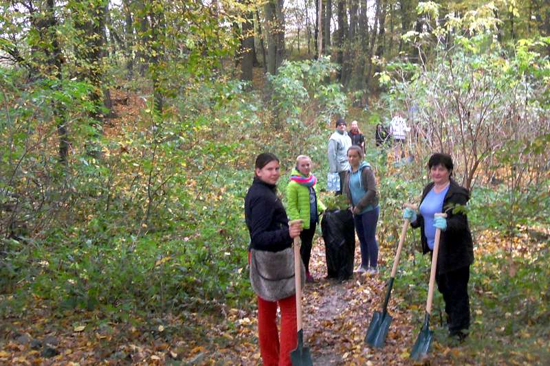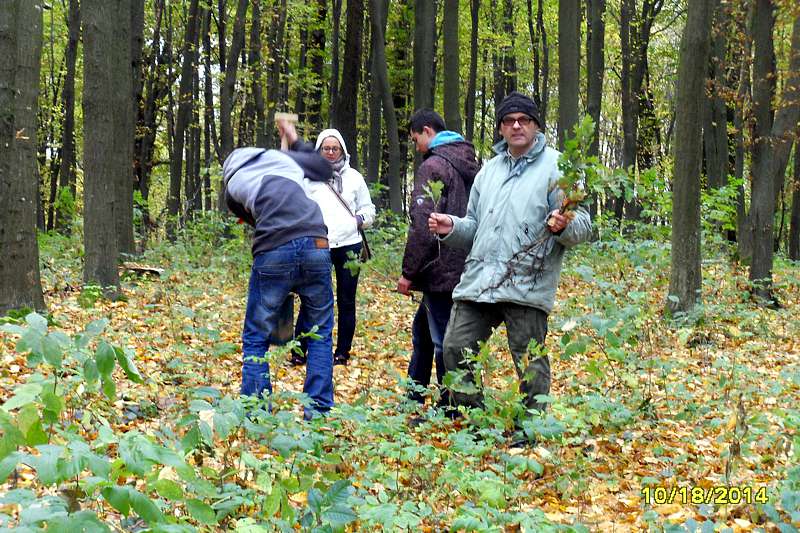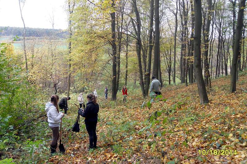 Przed przystąpieniem do pracy p. Antoniuk prezes Stowarzyszenia Edukacyjnego "Razem" w Hrubieszowie, przypomniał znaczenie i umiłowanie przyrody w życiu i nauczaniu św. Jana Pawła II, wyniesione ze stron ojczystych, które towarzyszyło Mu bez względu na szerokość geograficzną i upływający czas. Po godzinnym sprzątaniu zebrano wiele kilogramów plastikowych butelek, papierków i innych odpadów. Następnie uczniowie zostali poinstruowani z podstawowych zasad obowiązujących podczas sadzenia młodego pokolenia lasu. Po krótkim instruktażu przystąpili do wysadzenia 50 dębów. Po wspólnym sadzeniu w dobrych humorach wszyscy uczestnicy udali się na ognisko i poczęstunek.