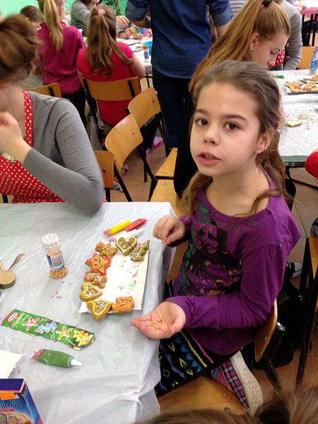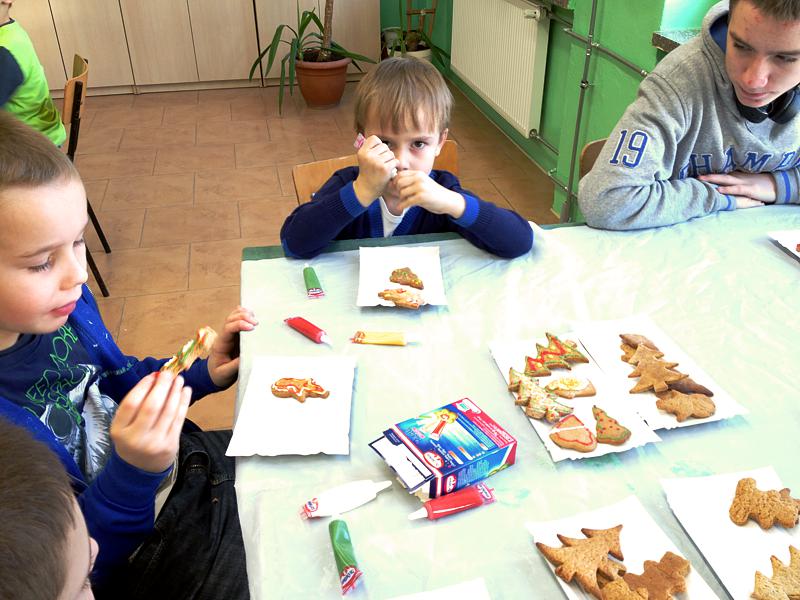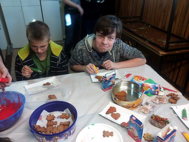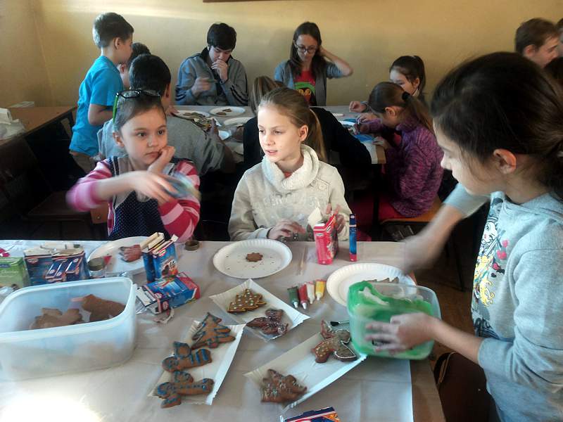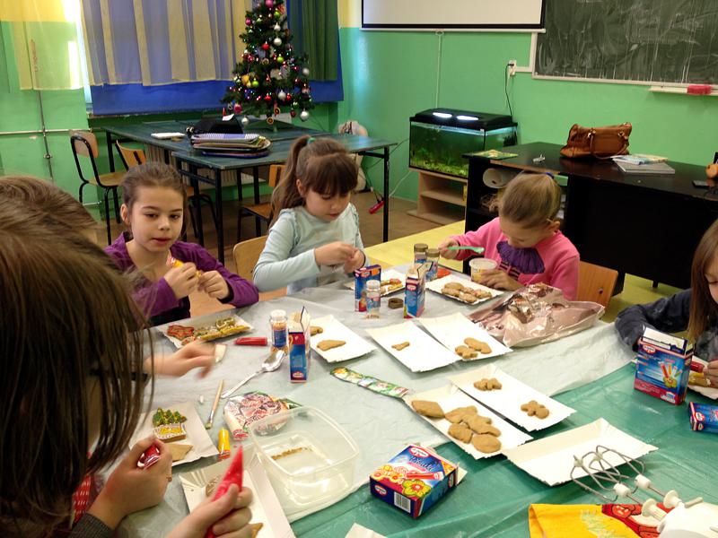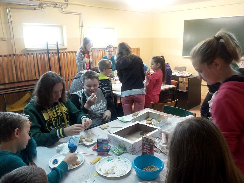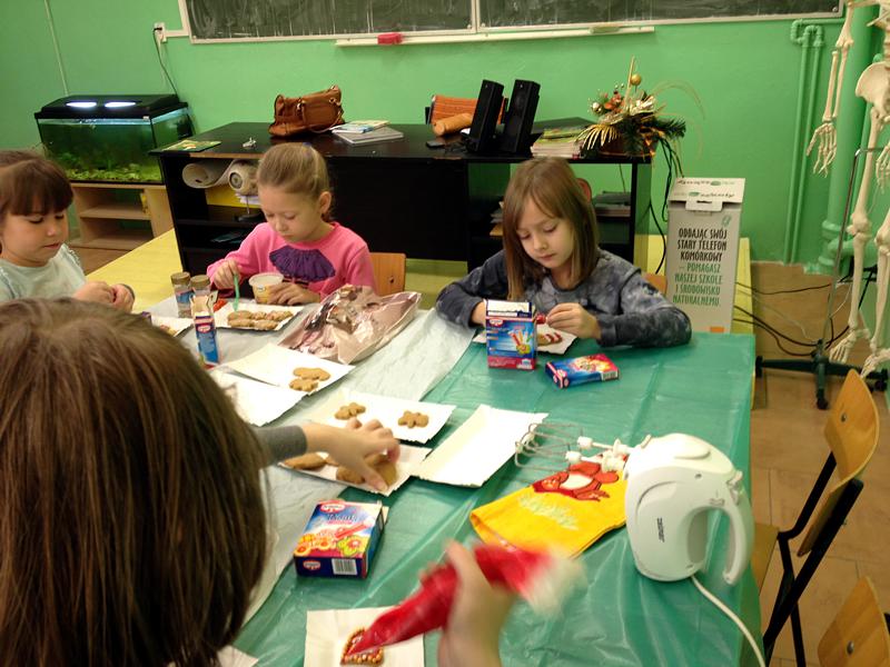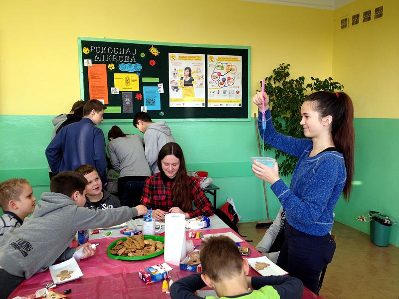 W grudniu w naszej szkole zapachniało pierniczkami. Wszystko za sprawą inicjatywy Szkolnego Klubu Europejskiego. Uczniowie kasy II b i III c gimnazjum przygotowali dla swoich młodszych koleżanek i kolegów ze szkoły podstawowej słodką niespodziankę – zdobienie pierniczków. Jest to jedno z najbardziej ulubionych przez dzieci zajęć poprzedzających Boże Narodzenie, stąd pomysł został przyjęty z dużym zadowoleniem.
