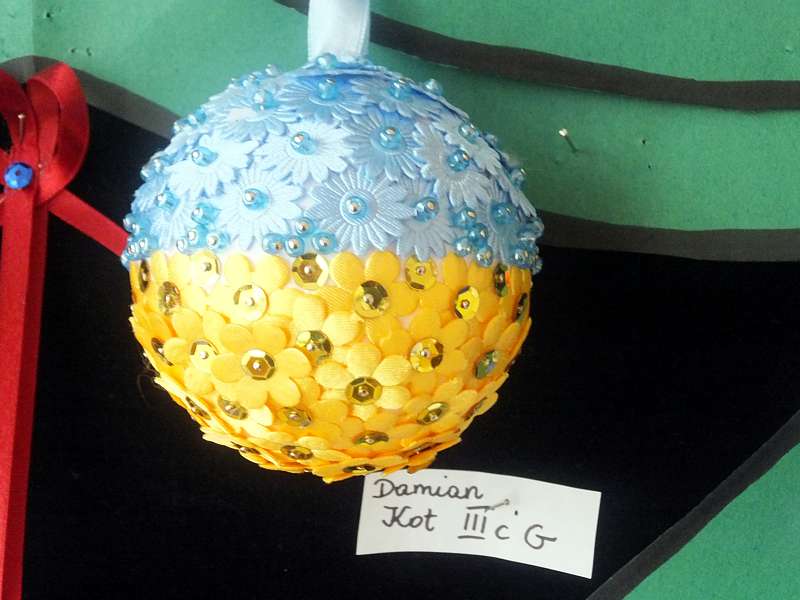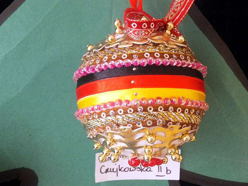 Nic tak nie zdobi choinki jak samodzielnie wykonane ozdoby. Uczniowie zarówno gimnazjum jak i szkoły podstawowej wzięli udział w konkursie na najpiękniejszą bombkę. Pomysł opiekunów Szkolnego Klubu Europejskiego obydwu szkół spotkał się z dużym odzewem. Warunkiem uczestnictwa było wkomponowanie w pracę flagi wybranego państwa. Wszystkim uczniom gratulujemy pomysłowości i staranności przy wykonaniu ozdób. Bombki można podziwiać na gazetce szkolnej na I piętrze.