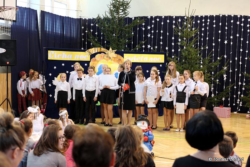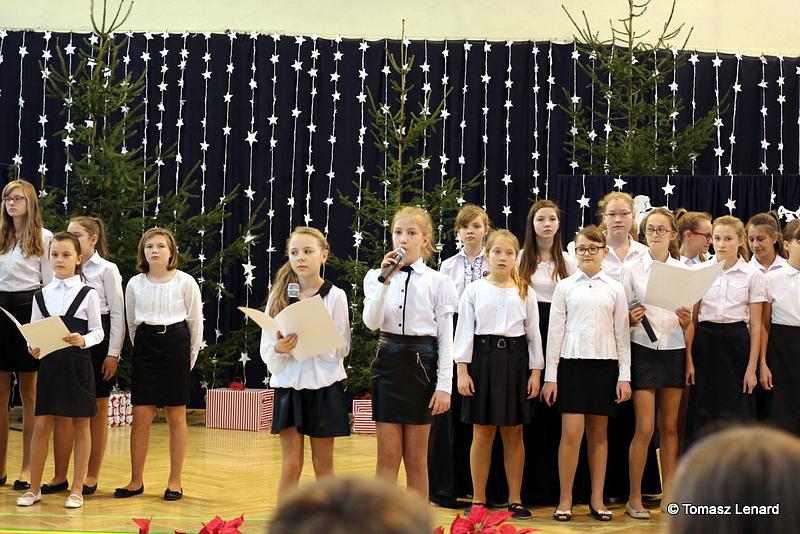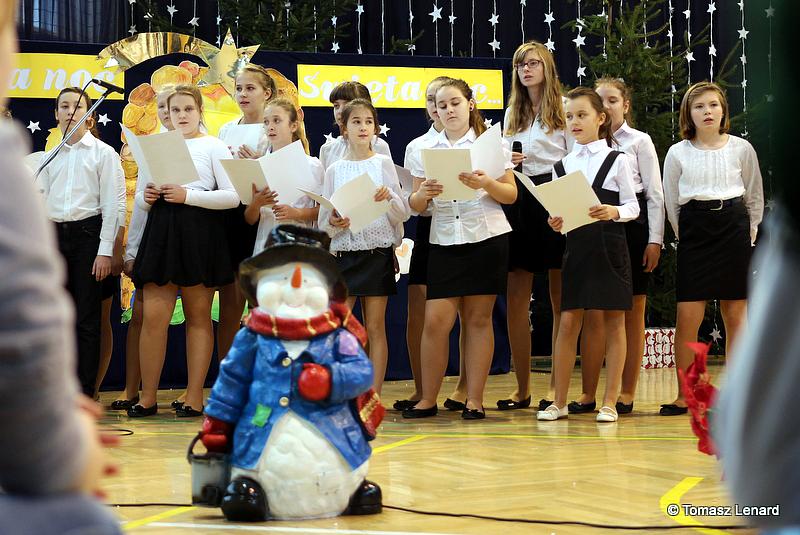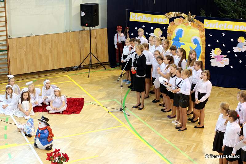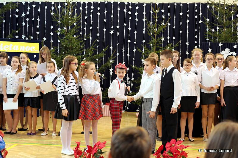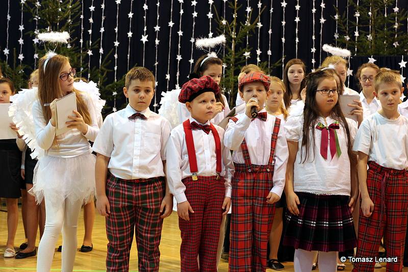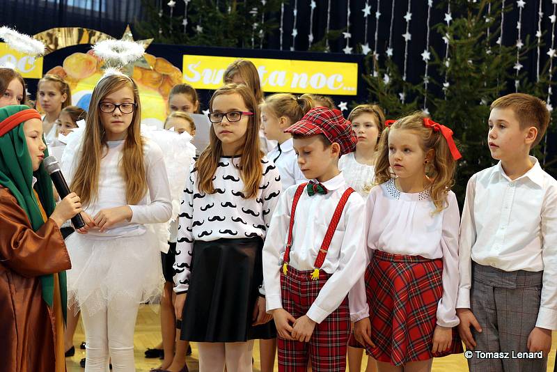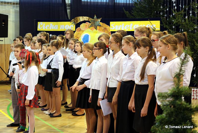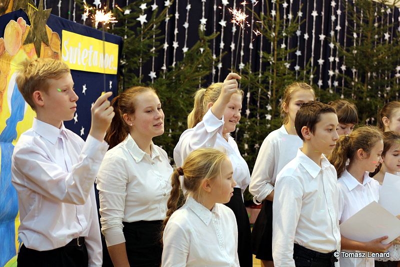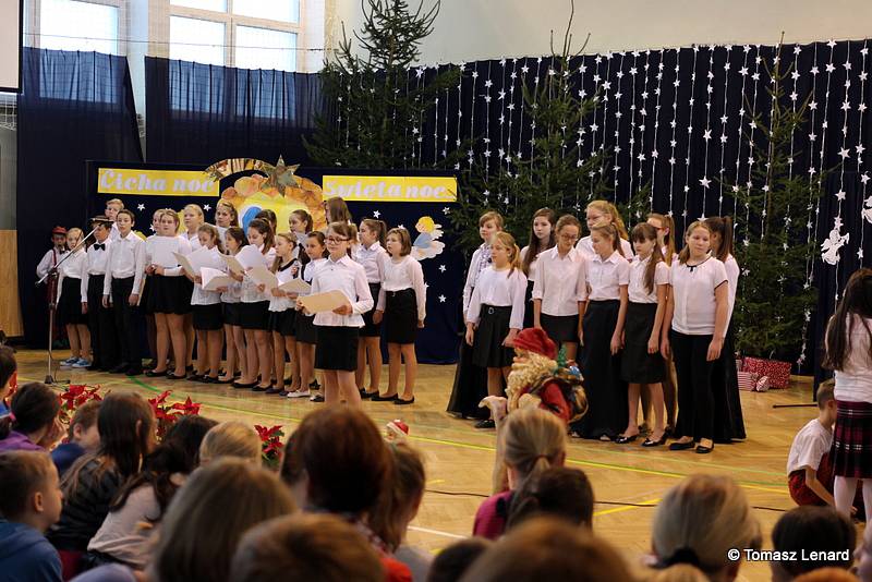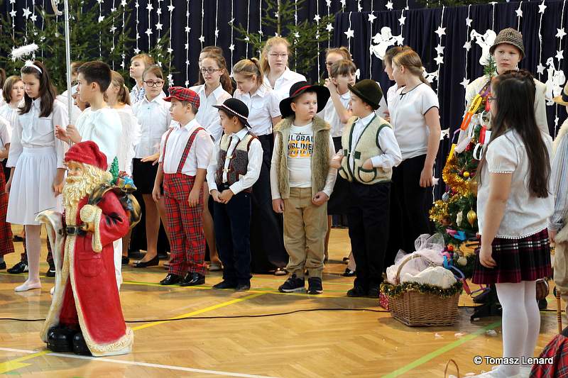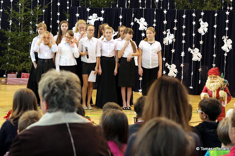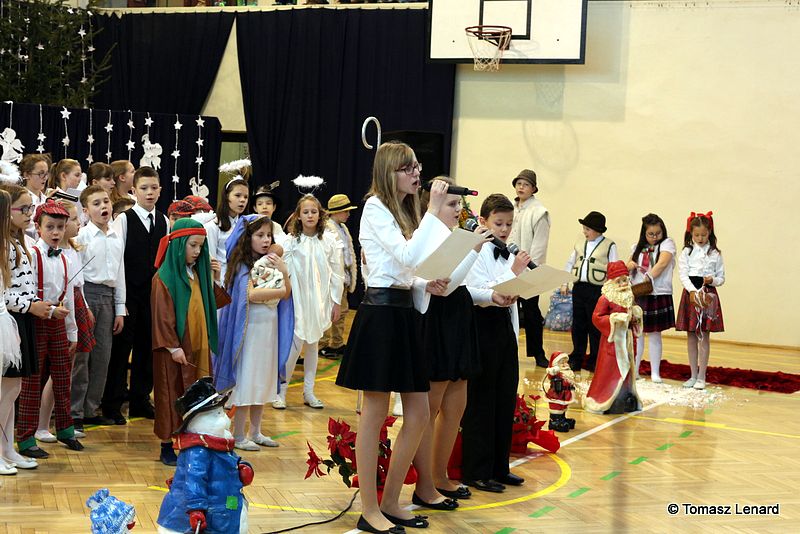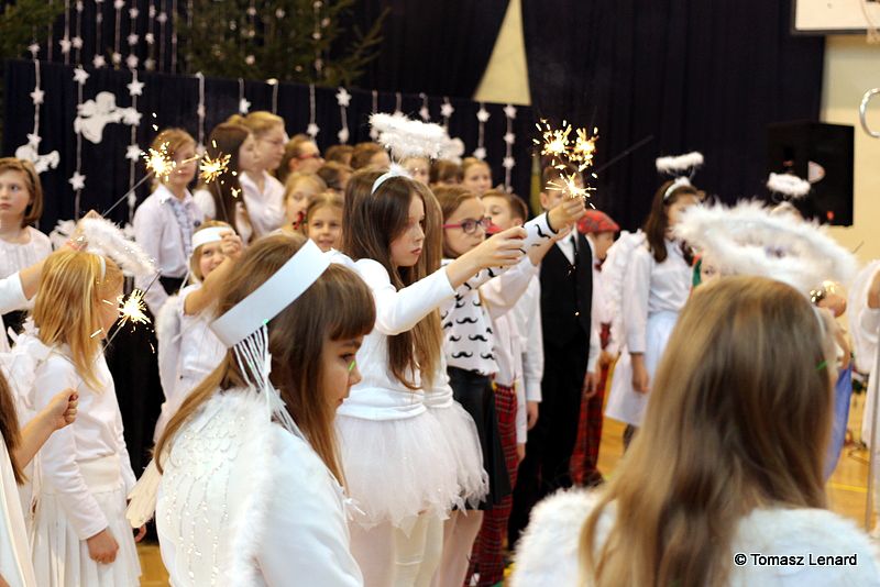 Był także okazją do spotkań z drugim człowiekiem w życzliwości, dobroci, serdeczności, której tak często nam brakuje w naszej codzienności. Klasy II a z wychowawczynią panią Agnieszką Handziuk i IV a z wychowawczynią panią Justyną Marcych przy współpracy księdza Pawła Kubiszyna oraz chóru szkolnego, którego opiekunem jest pani Aneta Franke przygotowały świąteczne przedstawienie.