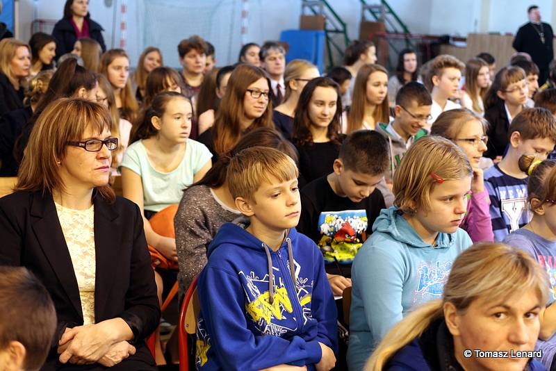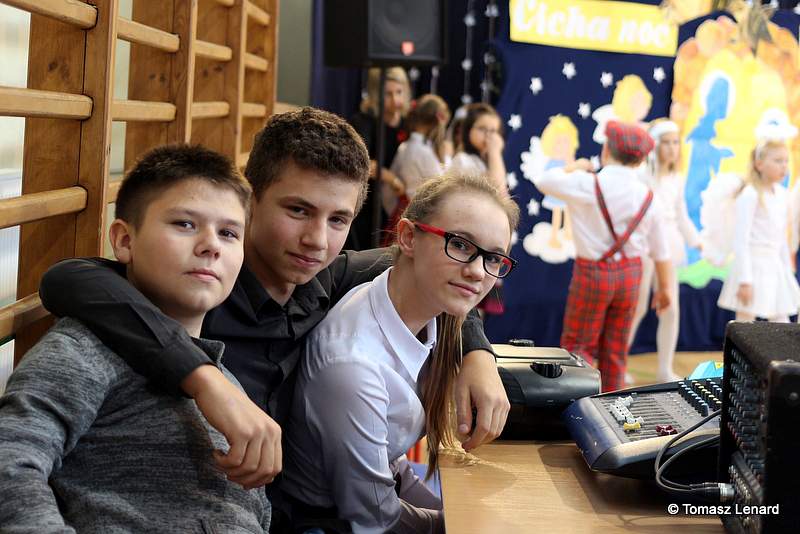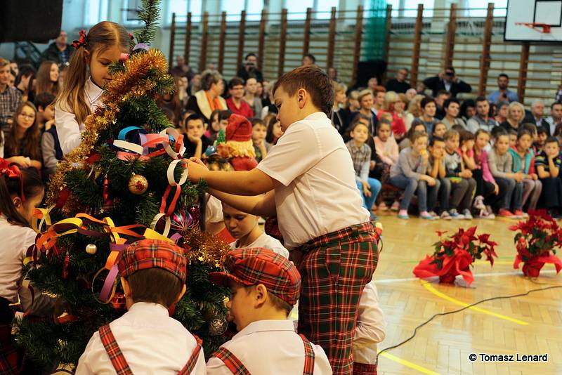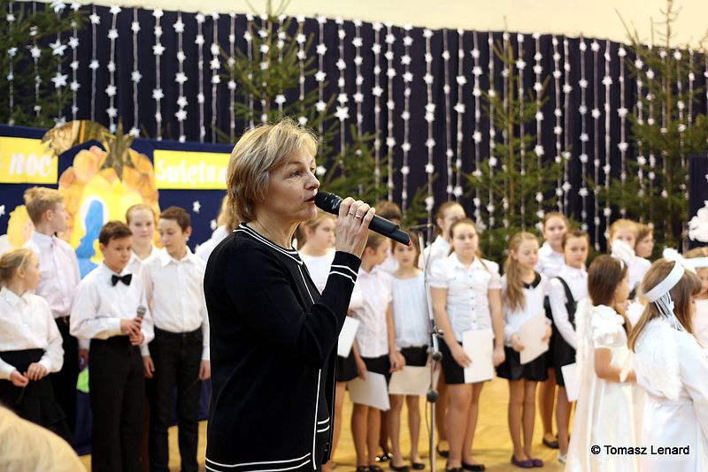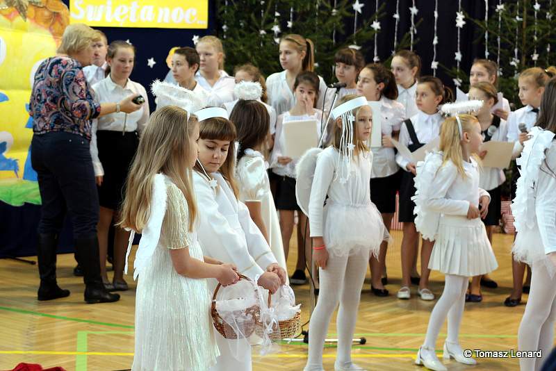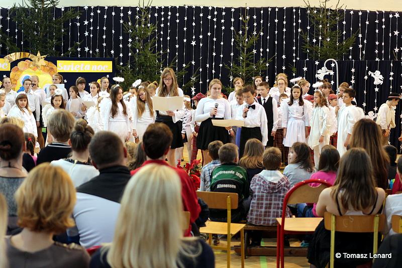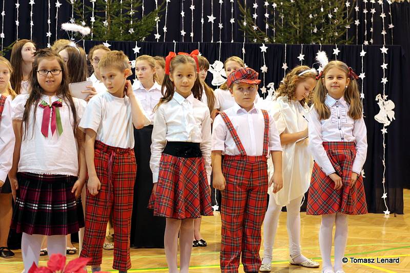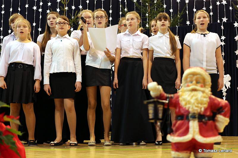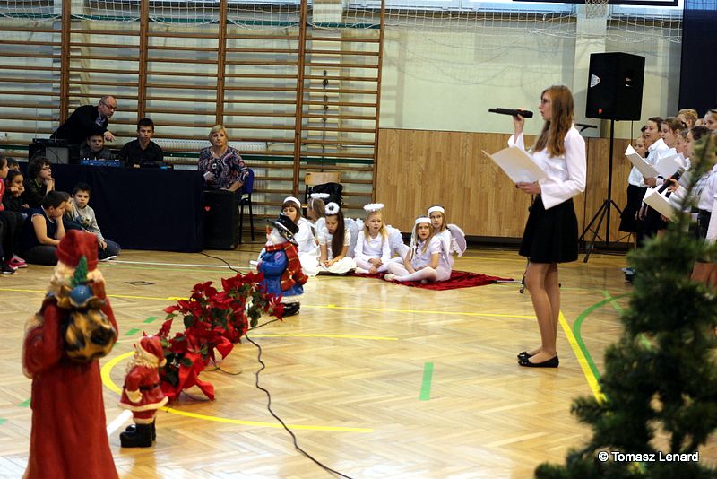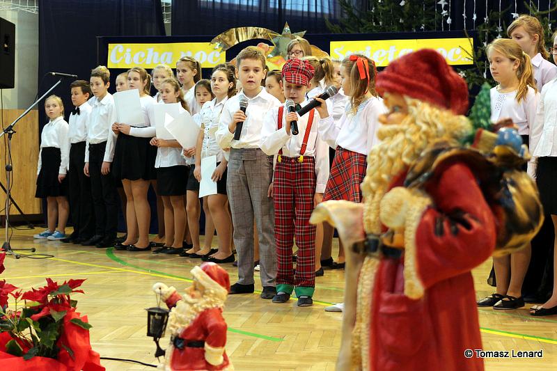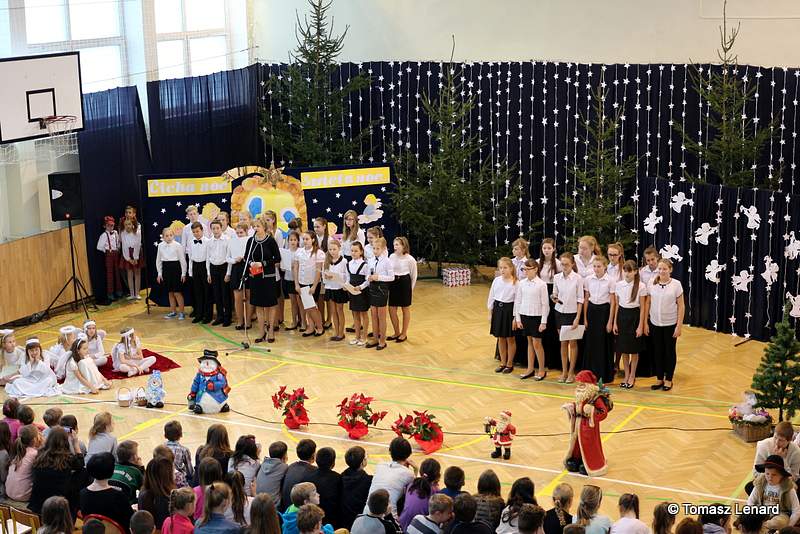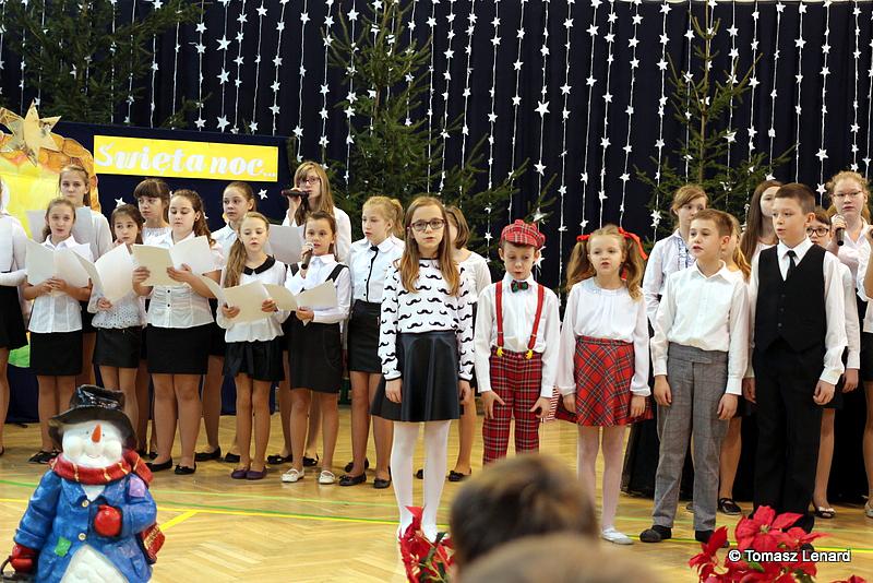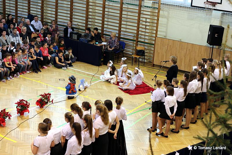 Był także okazją do spotkań z drugim człowiekiem w życzliwości, dobroci, serdeczności, której tak często nam brakuje w naszej codzienności. Klasy II a z wychowawczynią panią Agnieszką Handziuk i IV a z wychowawczynią panią Justyną Marcych przy współpracy księdza Pawła Kubiszyna oraz chóru szkolnego, którego opiekunem jest pani Aneta Franke przygotowały świąteczne przedstawienie.