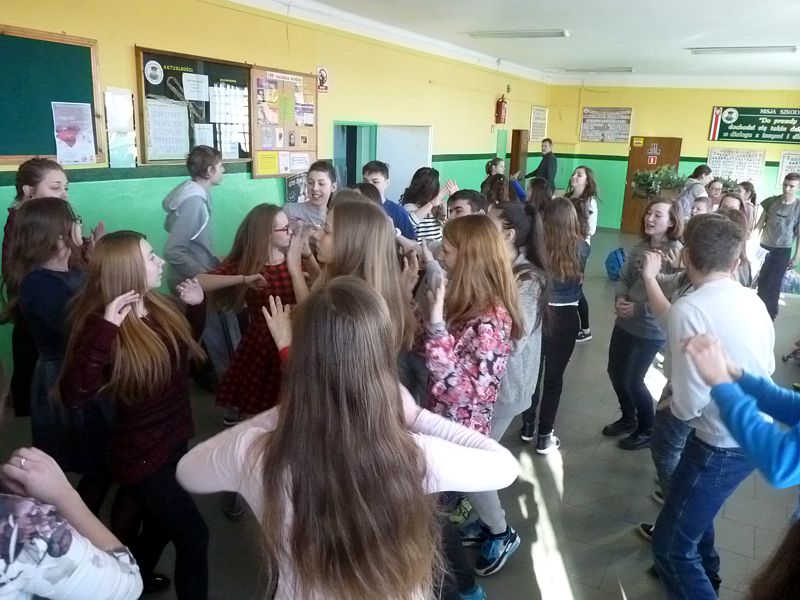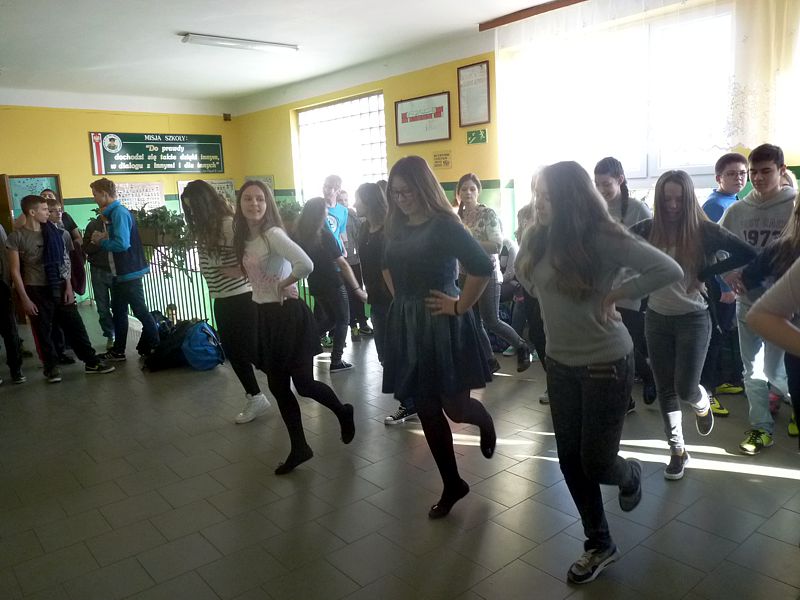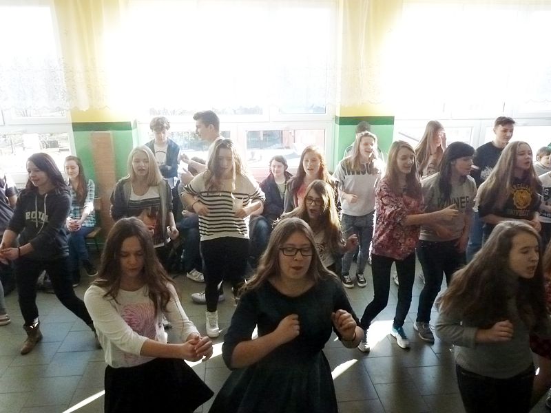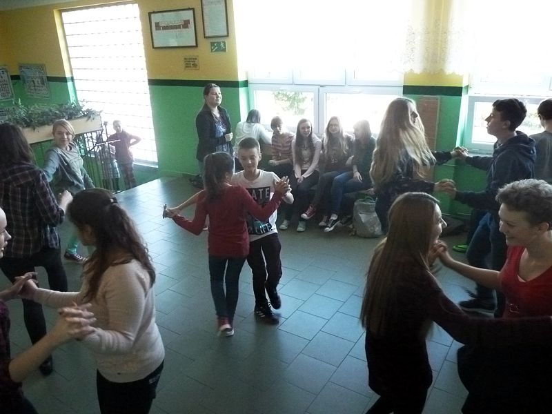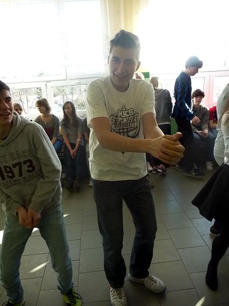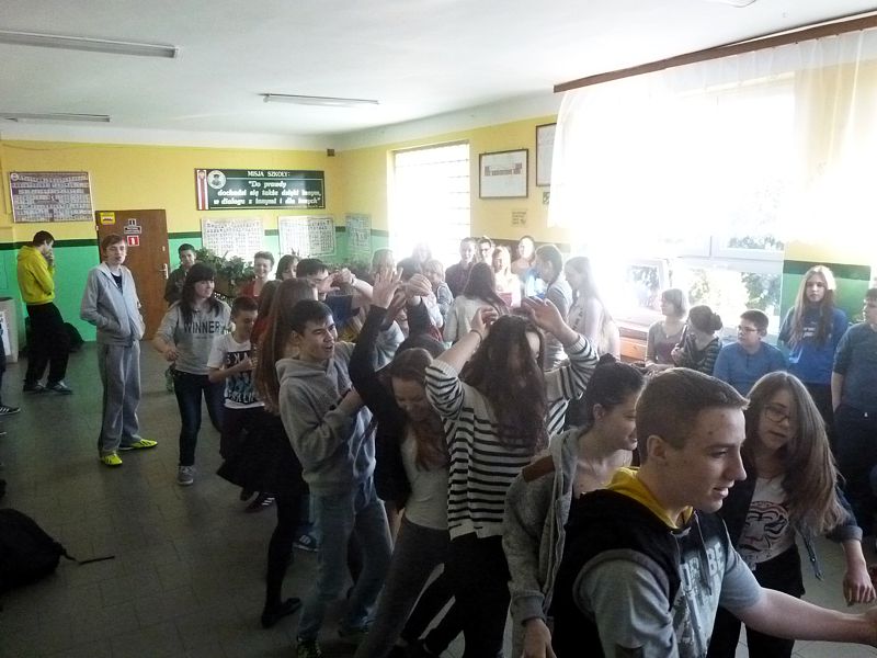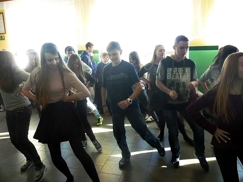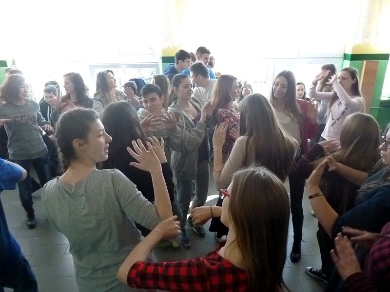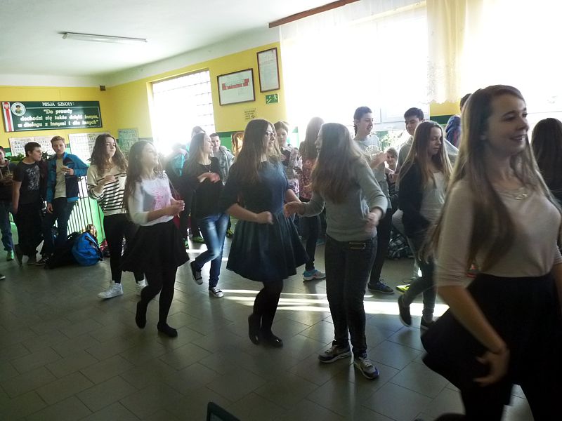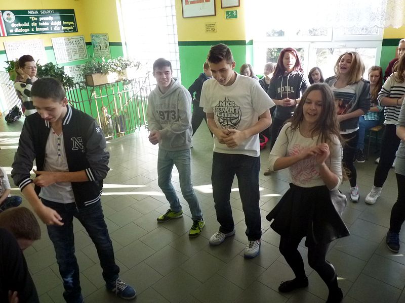 Doskonałym tłem dla tego przedsięwzięcia była piękna walentynkowa dekoracja oraz muzyka, która towarzyszyła uczniom oraz nauczycielom na każdej przerwie. Jednak jak się później okazało, takich przerw jak tego dnia jeszcze nigdy nie było w naszej szkole. Już na pierwszej przerwie Samorząd zaprosił wszystkich uczniów do wspólnego odtańczenia skrzypka i tańca belgijskiego, które w naszym szkole można by już chyba nazwać tradycją. I tak w jednej chwili korytarz szkolny zamienił się w parkiet taneczny. Nie zaprzestaliśmy jednak na tym. Po każdym dzwonku oznaczającym przerwę rozbrzmiewała coraz to nowa piosenka i kolejne osoby dołączały się do świetnej zabawy. 17 luty można zdecydowanie nazwać dniem udanym, a nasze szkolne walentynki, choć trochę spóźnione, na pewno nie pozostaną łatwo zapomniane.