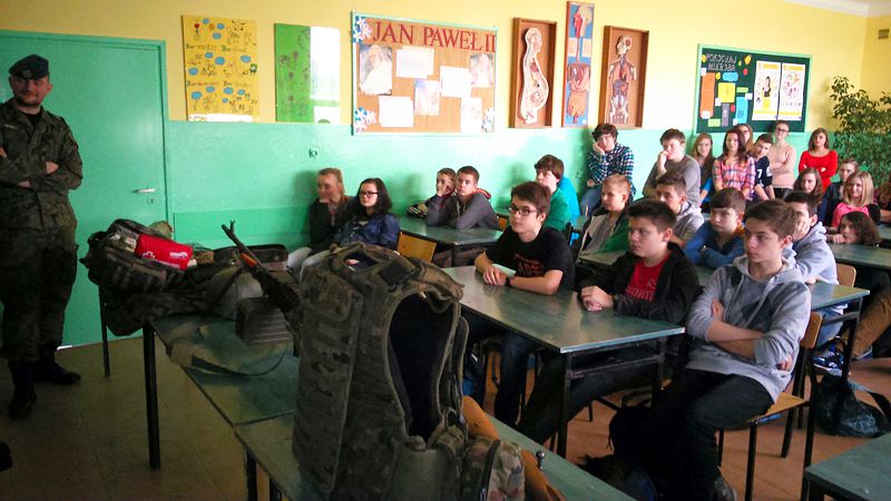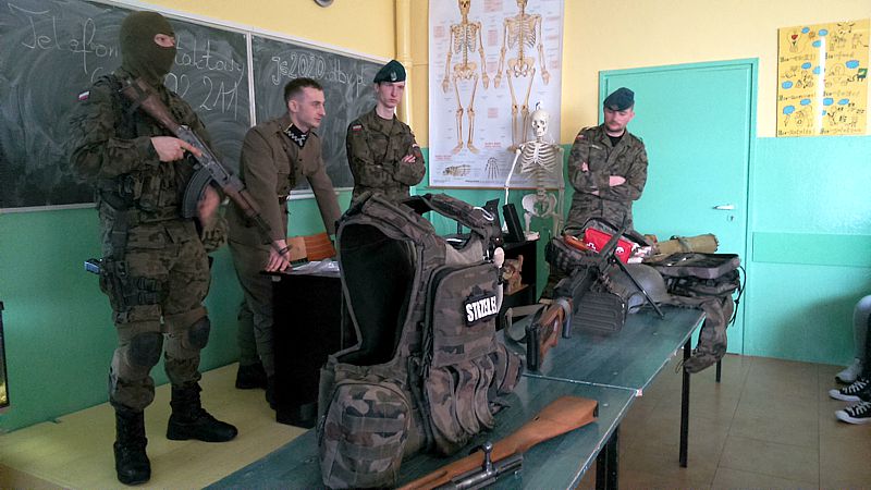 Goście omówili w jaki sposób przebiega rekrutacja do jednostki i jaki jest program szkolenia w jednostce? Uświadomili, że noszenie munduru zobowiązuje, szczególnie do tego aby od siebie wymagać więcej niż inni rówieśnicy. Dużym zainteresowaniem cieszył się również pokaz militariów.