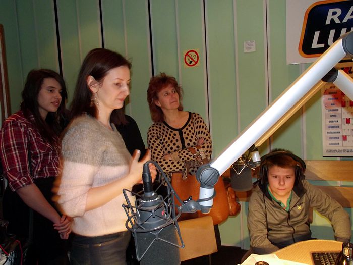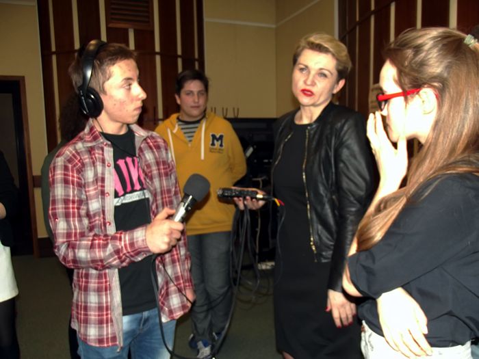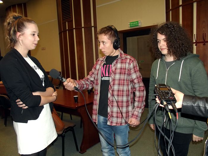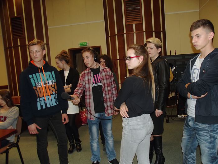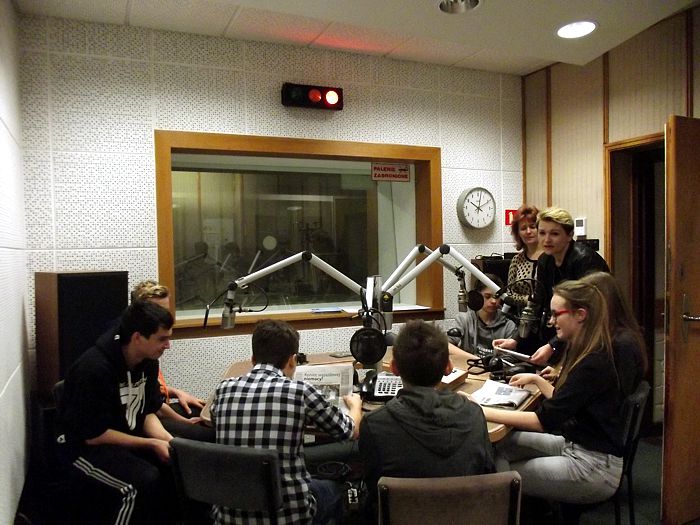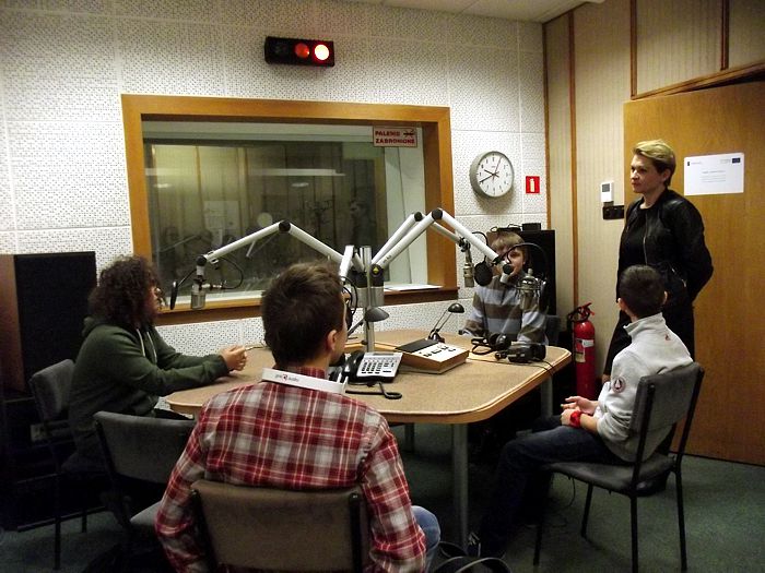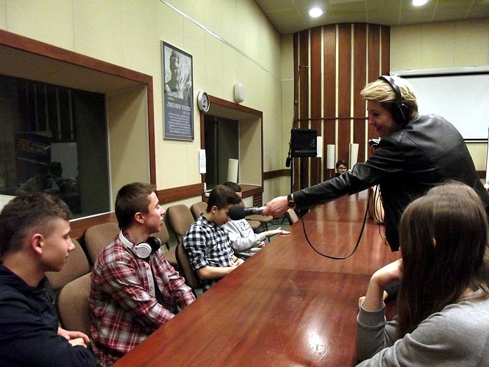 Młodzież miała możliwość aktywnego udziału w warsztatach dziennikarskich, podczas których ćwiczyli emisję głosu. Uczyli się metody przeprowadzania i udzielania wywiadu. Zapoznali się ze sprzętem radiowym, o którym opowiedział im technik radiowy. Po ćwiczeniach warsztatowych uczniowie zwiedzili różne działy redakcji. Przyglądali się pracy różnych redaktorów przygotowujących audycje. Widzieli także w jaki sposób przeprowadza się audycję radiową. Mieli możliwość zdobycia wiedzy o niej podczas rozmowy z p. redaktor Agnieszką Krawiec. A potem chętnie zasiedli przed radiowym mikrofonem.